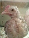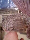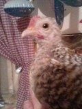 I'm sorry these pictures are so awful, my phone camera stinks but I'll describe her to you. First, she looks like a barred plymouth rock except that she is gray, I don't mean she looks gray, I mean she is gray with white bars. (I've had a ton of people tell me she just looks gray because of the white bars) Second, her wings only have bars on the shoulders, the rest of the wing is solid gray, Third, her legs are silver, Fourth, her chest, tummy and bum are white, Fifth, her head is cream with a brown spot on top and again on the back of her neck. She is almost completely feathered now, no more baby down and the feathers on her chest are the lightest of gray with almost invisible white bars because the gray is so light, but I have noticed in the last week that the tips of those chest feathers are turning brown, she looks dirty. She is developing a comb but I know that hens can have combs and wattles, I checked her saddle feathers and they are blunted, no points, also no spurs. She is a bantam also, if that makes a difference and also explains why I can hold a 5 to 6 week old on my finger lol. Any ideas on breed would be great, thx ahead of time!