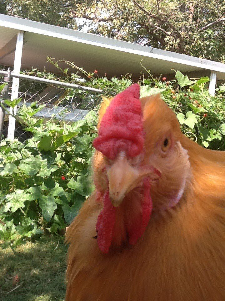Oh I definitely have some that have a few feathers in between the wattles without being cross-bred. Example.. My old Delaware hen has some scragglies in between her wattles that remind me of the OPs bird.the beard is almost non existent. none of my clean faced chickens have those longish feathers in between the wattles like this one does, those feathers on her here are almost as long as her wattles are and a bit more fluffy around the sides of the face were a good beard would be than on a clean chickens face....again going by my birds and my parents stock as well
