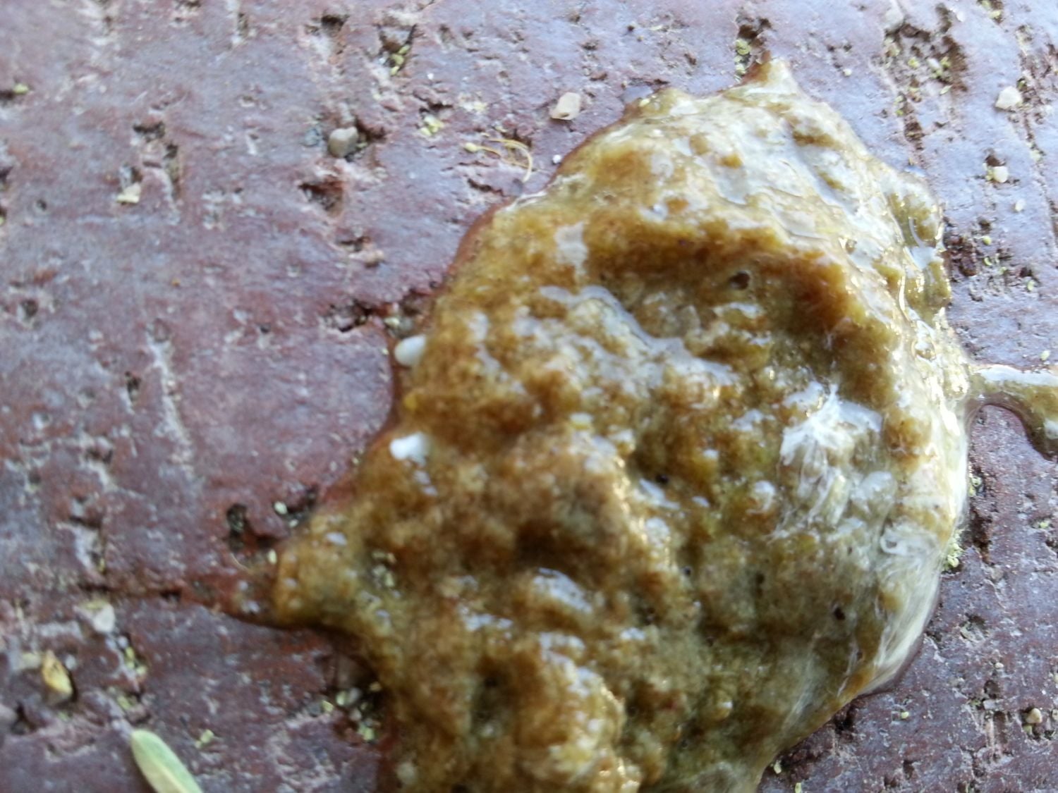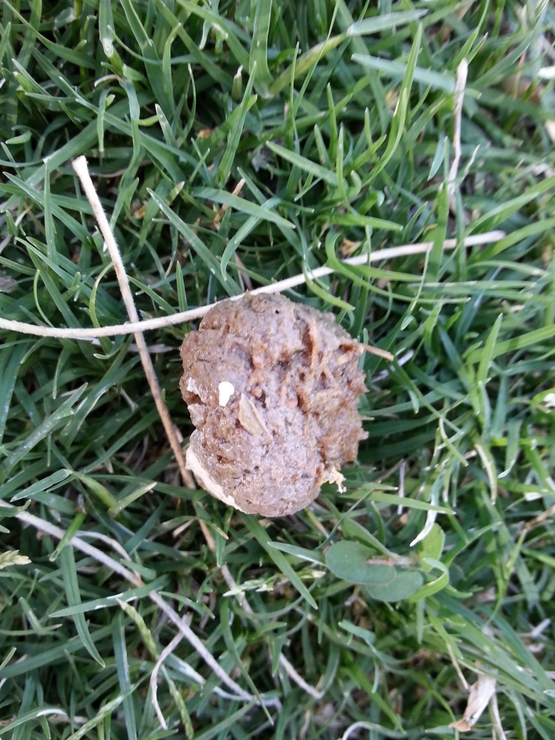 I have noticed on a couple of occasions brown poop that is white on the outside. I didnt see it drop, so i am not certain how old it is, but it was dropped within 45 minutes.
