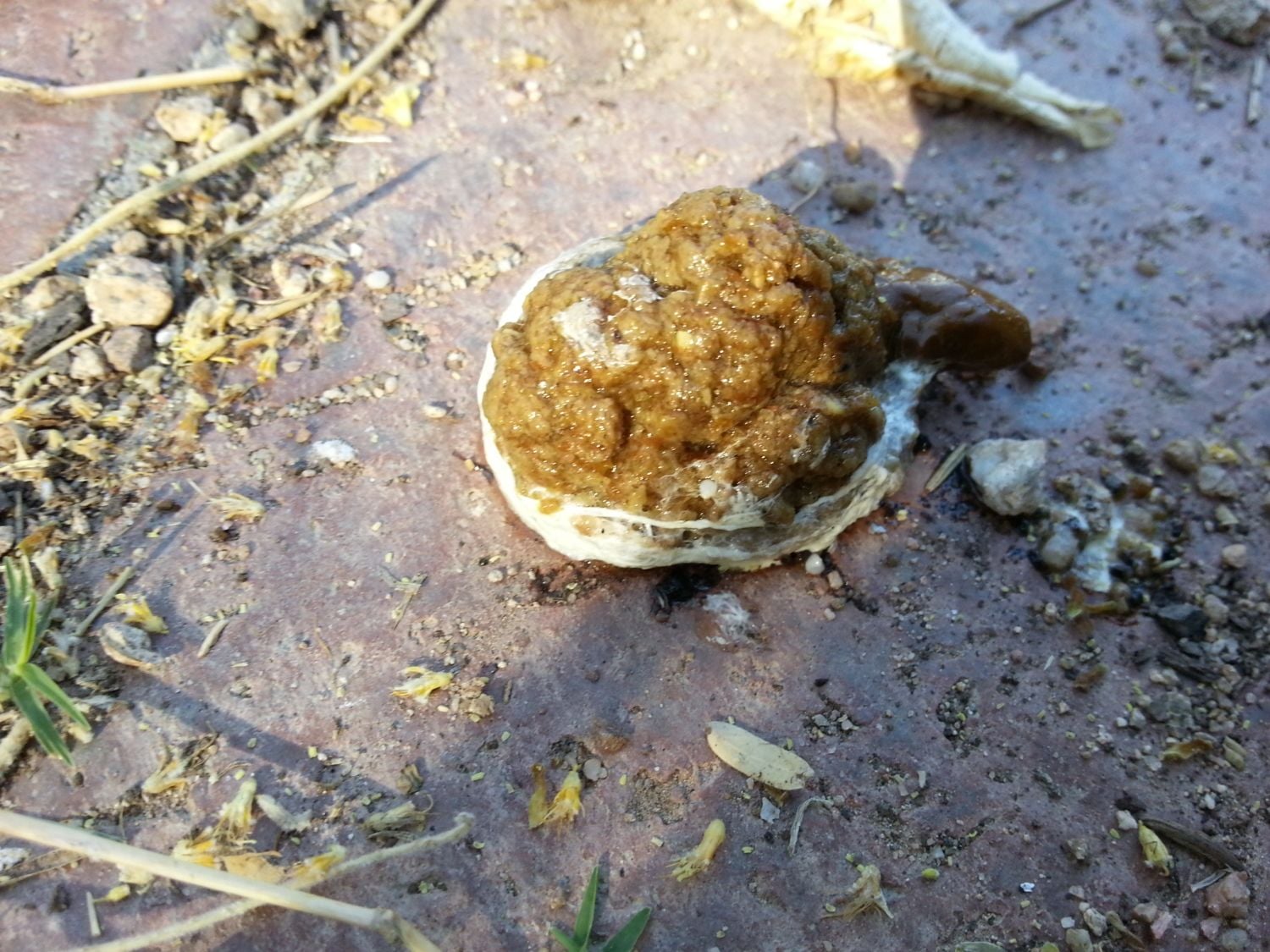 On the outside of the poop there are some very small white things that look like larvae. They are maybe 1/16" in length. When i look into the poop i havent noticed any worms or other larvae.
