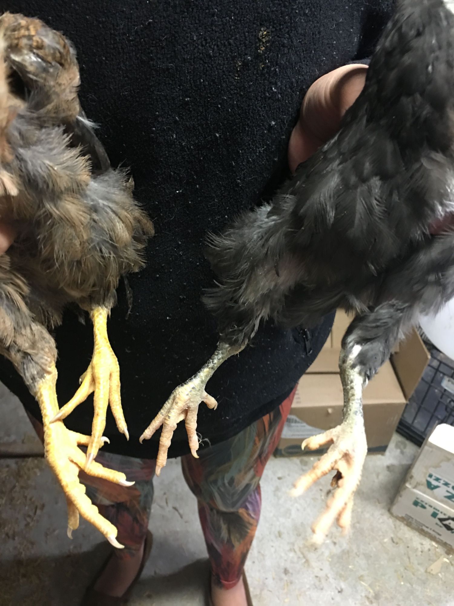 Hello. I just noticed two of my chicks about 2 months old are not using their feet. I noticed them laying for a few days and didn't notice an issue until tonight. They can walk but use the hocks and have a wobbly gait. I've raised a few chicks before that I purchased from feed stores and have never seen anything like this. They are being fed Texas Naturals crumble and occasional chick grit. They are alert, eating, and drinking well. Could they have curly toe paralysis? I'm lost as to what I should do. Read I can supplement with b2 vitamins? Or make shoes? Greatly appreciate any information and advise!