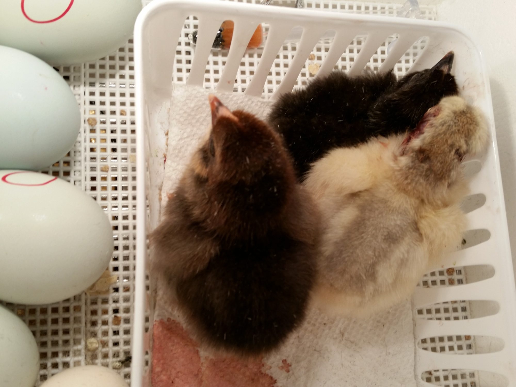 I have a flock of about 30 chickens with 3 rooysters and 3 ducks on the side. Well my ducks started laying eggs long story short one of my older hens was broody and would sit on the duck eggs right after being laid. Now I have about 12 eggs at different stages of development. Well I let her sit the eggs and about 2 weeks ago an egg hatched no surprise a chicken had lad an egg in with my duck eggs. We moved momma, chick and eggs into a dog create with food and water. All was well until yesterday when one of the duck eggs hatched. All seemed fine I got home today after work my husband reported that when ever heard would look in on ducky he would find momma chicken had pushed out from the eggs and it was shivering in the cold. Well then Ifound she had pecked at ducky right behind the head at the neck and now there is a soar there. Of course I took momma out to the coop and set up a brooder with heat lamp and my husband said take the eggs in there with ducky and chick. I have it nice and warm at about 98 to 99 with a wet sponge for humidity and wood shavings. Should I go buy an incubator tomorrow or take the eggs out to another broody hen? And put triple antibiotic on it?