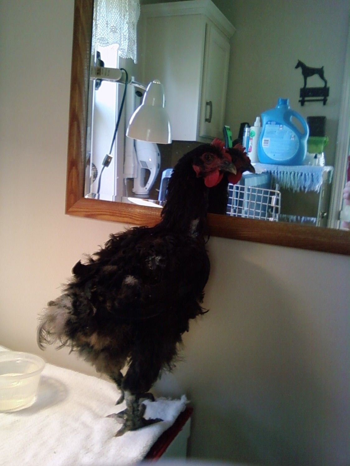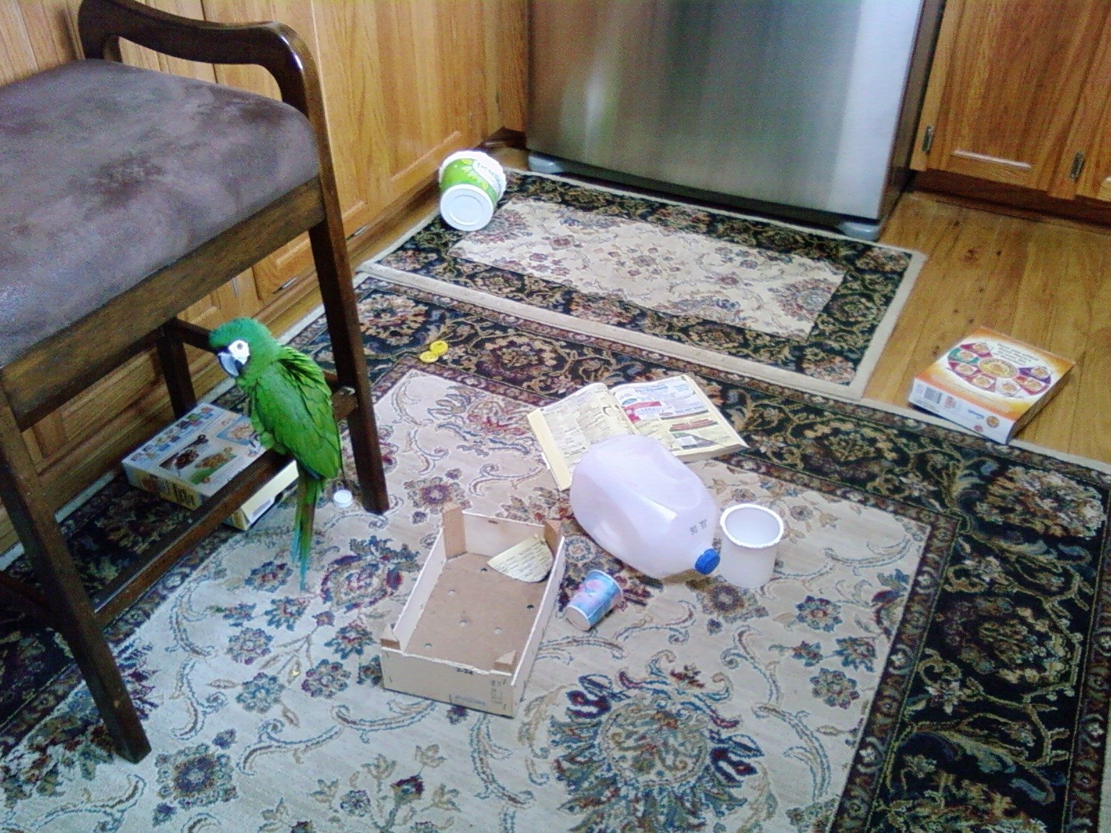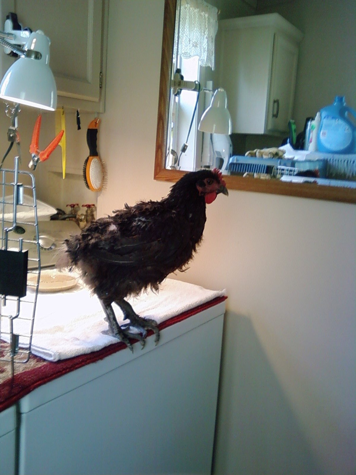 This is my 'house chicken' Merlin out to play. He loves to tear up cereal boxes and phone books.