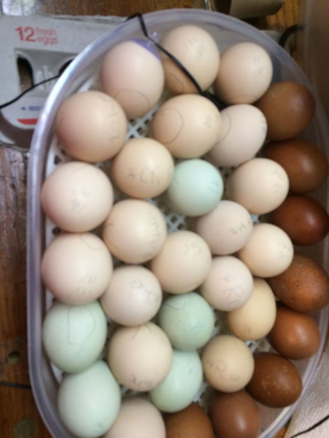 Red, Chocolate, Harlequin, Red cuckoo and lav orps 8 BCM and 5 lav AM's... Most of the orps are replacements from an EXTREMELY PO scrambled batch. (They don't even count lol) the others were orders of 6 + this time that ended up being 14 eggs not complaining just improvising until my other bator is free...![]()