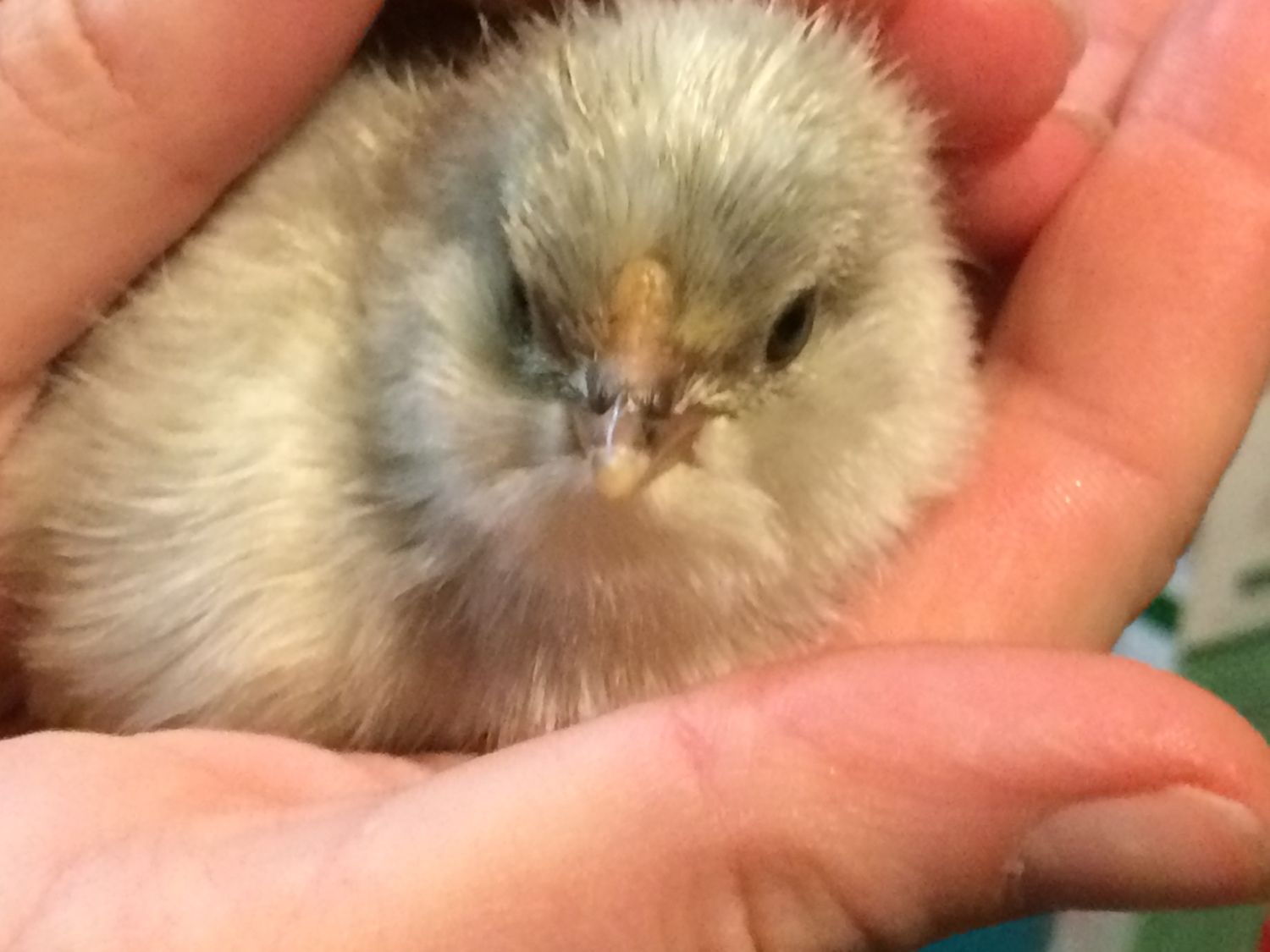 It's really cute! Enjoy your new chicks.That's a F1 olive egger and a total moose so looks giant by the others lol thank you