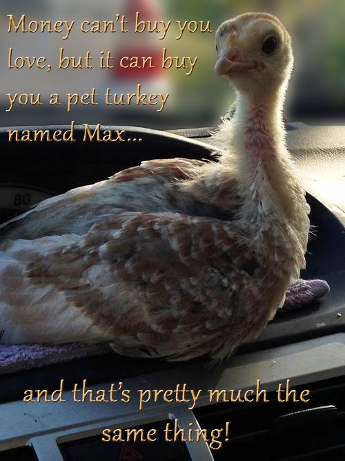 Max went to work with me again today and was well behaved as usual. We stopped by the feed store and I was told I spoil my chickens and turkey. ?? Was that a secret? I have a plan for getting my spoiled chickens to eat pellets. I am going to mix crumbles with pellets. The only crumbles I can find that my chickens like are expensive or crumbles and dust and they leave the dust. Does anyone know if there is a cheaper way to buy online?