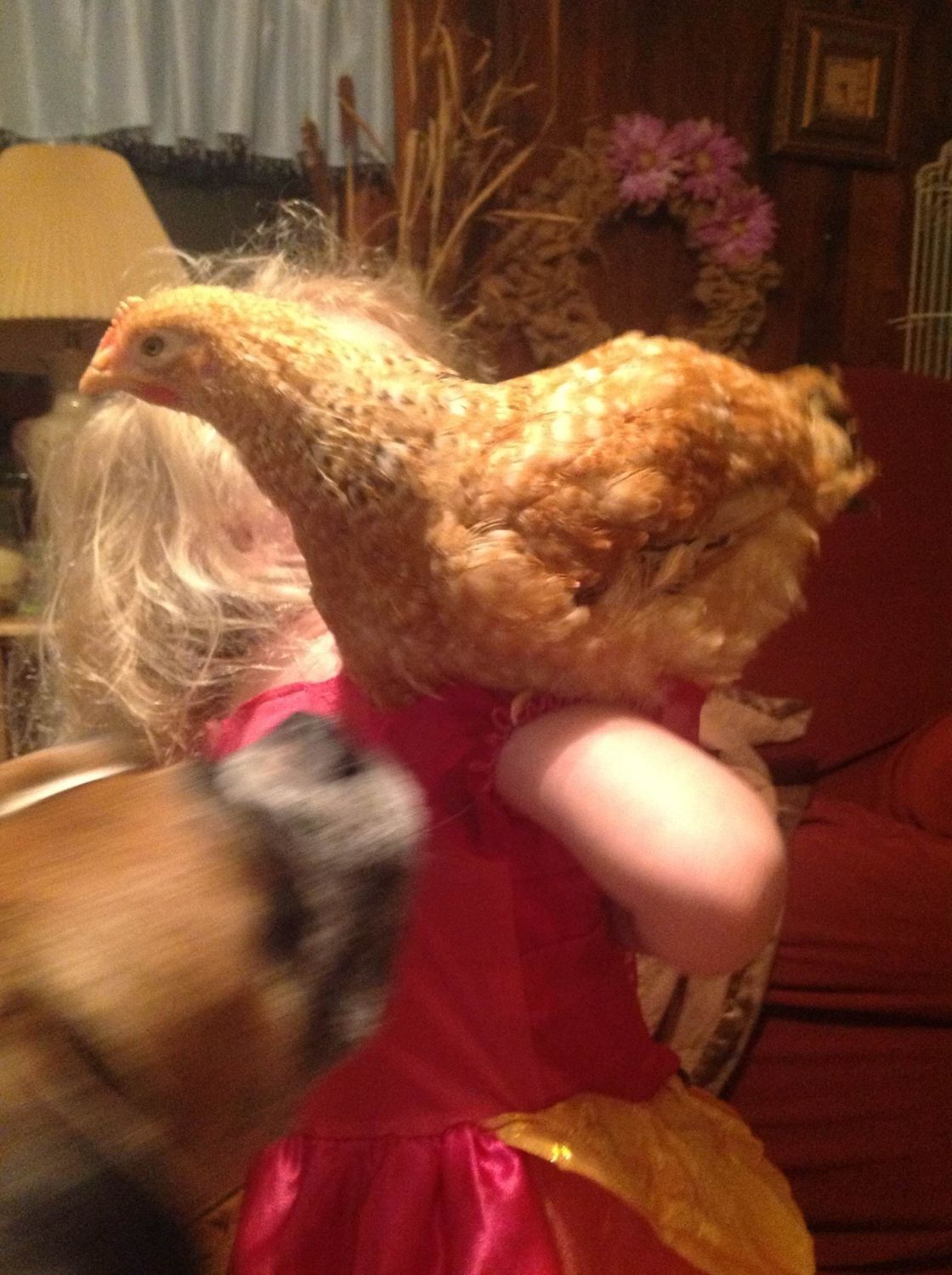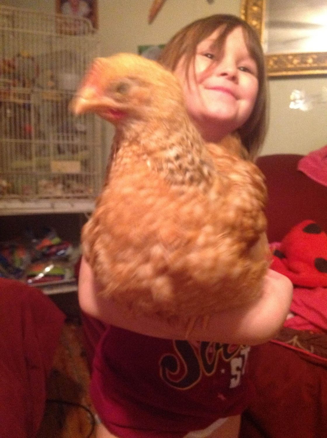If you insist! LOL I never mind sharing my pics of my chickens. Most people think I'm nuts if I show chicken pics, so I love it when someone wants to see them! haha This is Rocky, father was a RIR Roooster and Mama was a Barred Rock hen. Is he ALMOST 9 weeks old. He was a lone hatchling from my broody hen, so he has been hand raised and thought of me as mama from day 1. Love him!!!