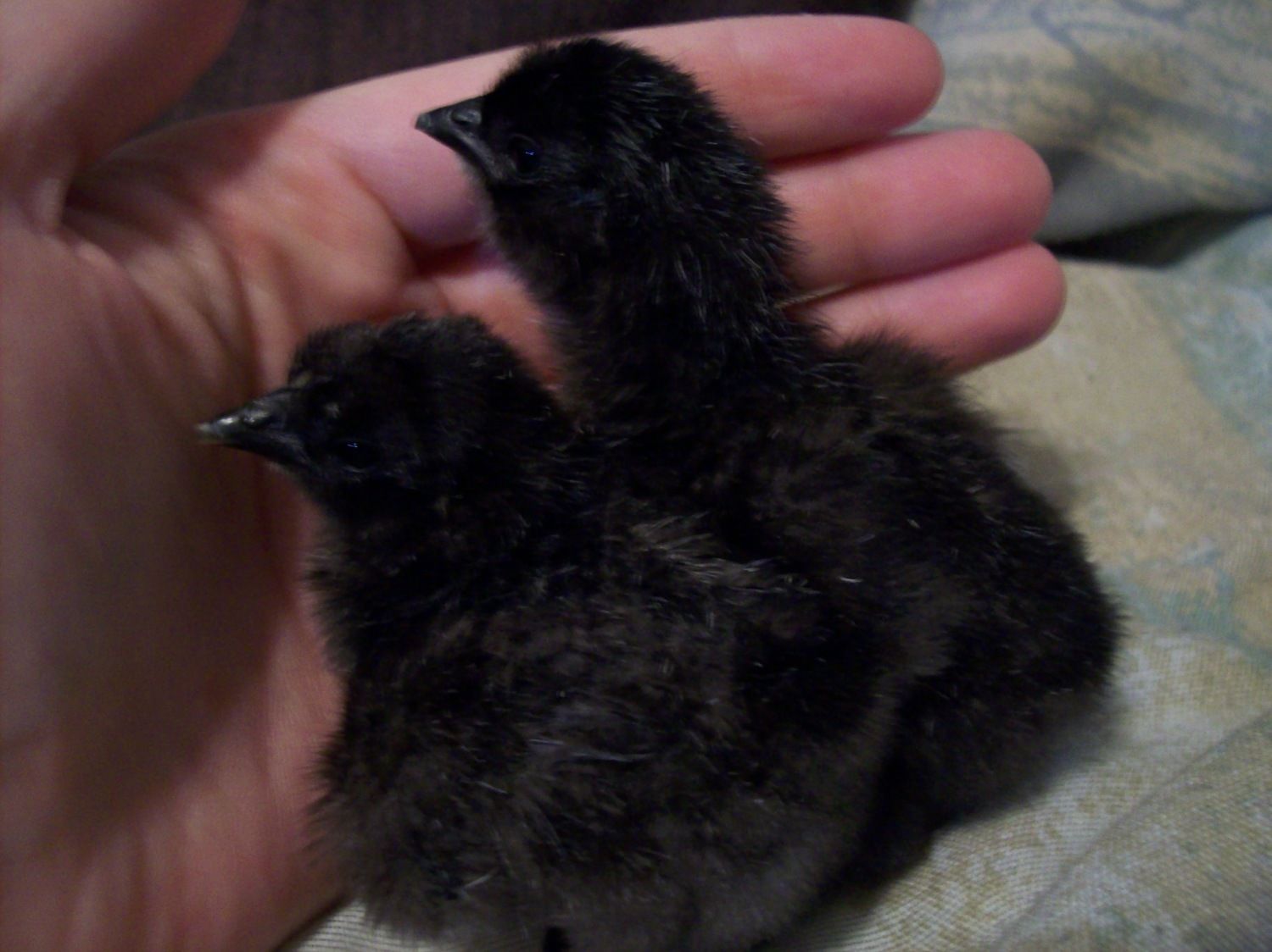 Adria is trying to hatch a rock egg right now, so just for the fun of it I put the oldest black baby under her (almost two weeks old). She instantly accepted it, but it's far too cold outside to leave the poor little thing out there (teens during the day, negative teens during the night), so I took it back after just a couple minutes. Well, it wasn't entirely just for the fun of it. I was also seeing how she would react to it, because I would like to keep one of the black babies. I'll just have to make sure it's a walnut combed baby and not a straight combed one (personal preference).