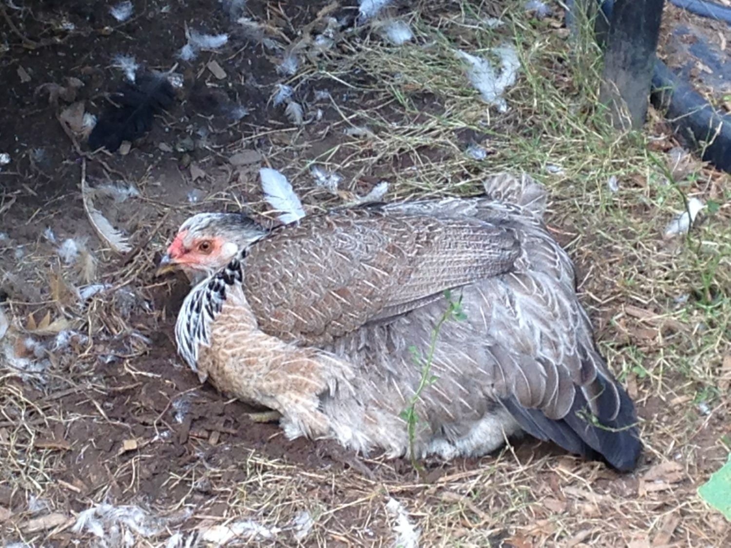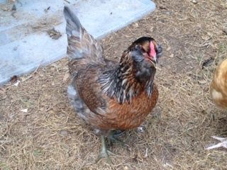 One of my only 3 Apenzeller Spitzhauben (cute little splash mohawk chicken) that I hatched myself. I could kick myself. It was such a bad day otherwise I wasn't thinking straight. The 2 year old woke up at 1:45am - 15 minutes before I was due to go to bed and then stayed up till 4:30am - one hour before we had to get up and get his brother ready and to school. So I got 1 hour sleep and then had a very cranky, screaming, half naked two year old I had to drag to the car and wrestle into a car seat. I so wasn't thinking "one of the roos will kill my chick while I am gone". *sigh* Then we came home and I had to carry my shoeless 2 year old (he's nearly 40 lbs and I am disabled with back, hip, leg and foot problems from 9 years in the army so that alone HURTS) and then I fell up the porch stairs carrying him. I managed to NOT drop him but ripped up my entire body pretty good. And then I found my dead chickie