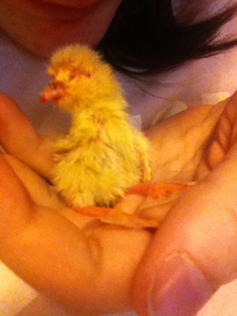 Well, I decided to try my nonexistent chick sexing skills on her and I had no idea what I was looking at lol. I wish they were easier or that I had sex links to practice on so I knew what I was looking at. Ducks I can do no problem, chicks apparently not so much :P
