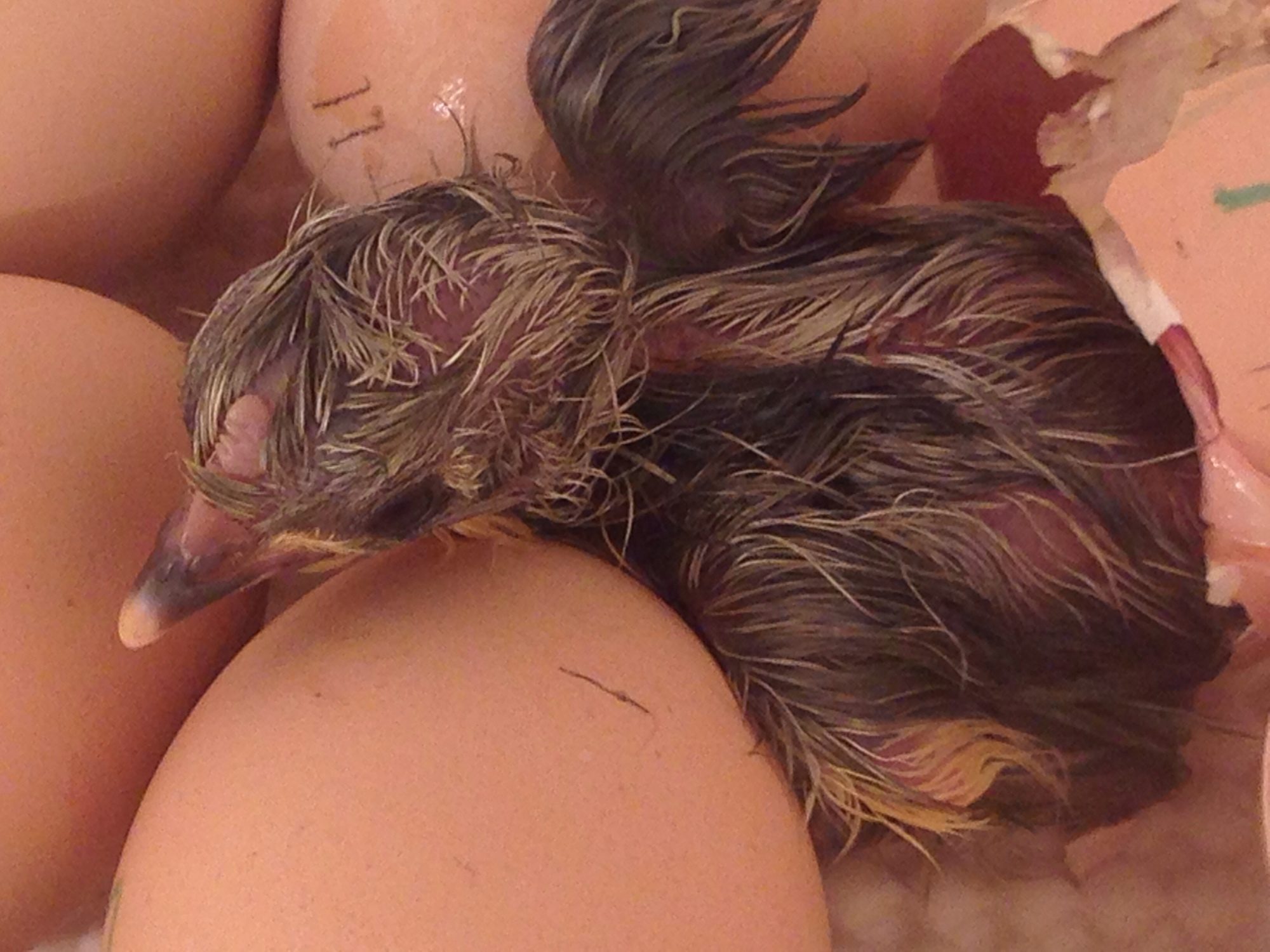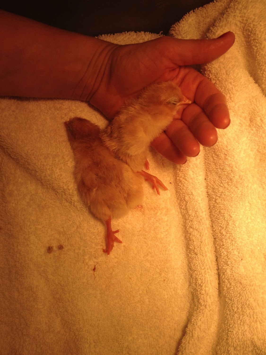 Also, had a deformed chick hatch as well (well I helped it, knew something was up)- it was born with no upper beak or eyes, instead it had a large mass of tissue growing on its head. I'll post about it or start a new thread about that one.