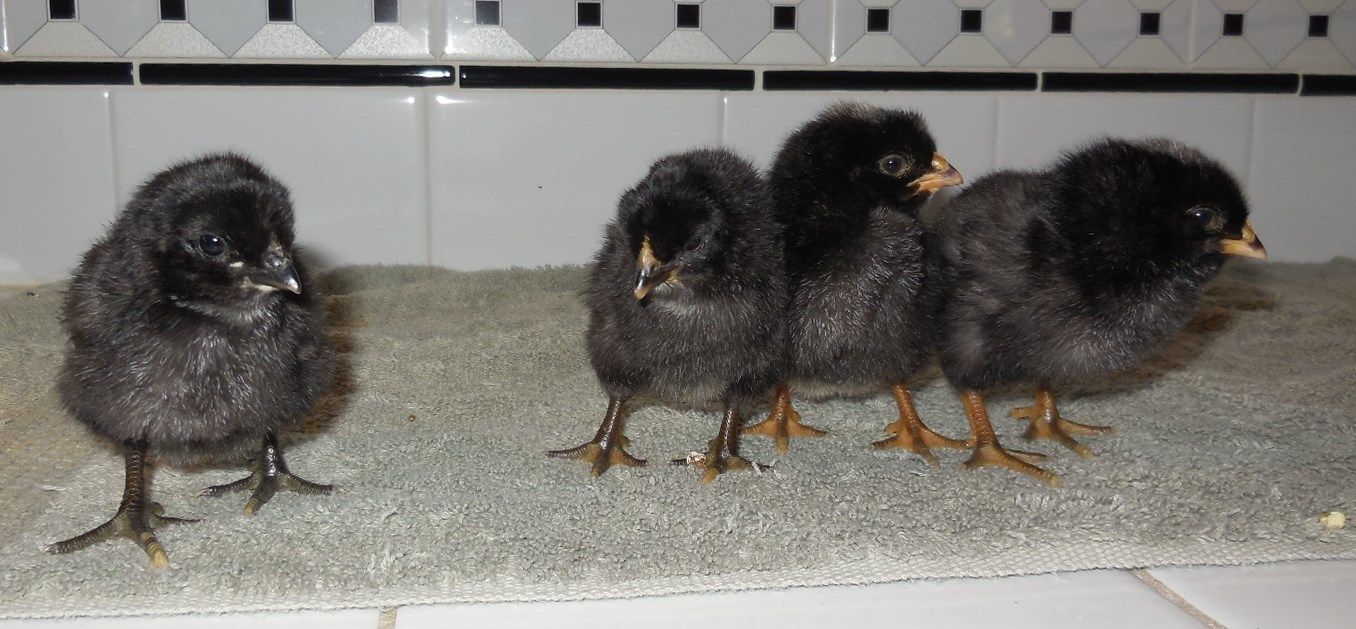 They're so cute! I love the chipmunk look of the AmeraucanaxCCL's <3Pics of my crew. They are 3 days old. All will be easter eggers or olive eggers. The sickly one is more alert and active today, plus she finally started pecking at food. The Ameraucana and Rhode Island chicks are proving to be a lot more "vigorous" than the Marans and Australorp babies. They are all getting along for the most part. Their little tail feathers are starting to grow in - so cute!