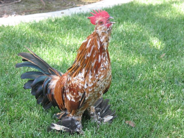 Breed: Polish mix papa and Buff Orp momma [we think - might be Barred Rock momma]