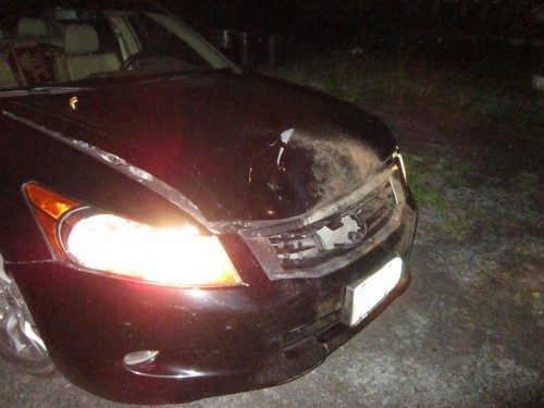 Thankfully, we were not hurt and the bear hit the car in just the right spot that it didn't bounce up into the windshield. Thank God we are still alive. It could have been much worse. I don't know if the bear made it. We drove back and forth a couple times to see if we could find it. My BF wanted to get out of the car and look, but I just kept yelling "STAY IN THE CAR!" I tried to call 911 to report it, but there was no cell service. Scary. I have good insurance, but the deductible is not going to be fun.