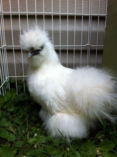 Ventured out to Tab's today to get a silkie hen. She is so tiny and so cute! (when you see a pic of my silkie you'll see why I'm calling her tiny LOL) And she's a year older than mine. I'm beginning to second guess if mine is a roo.Anyway, we cleaned her up after getting a little messy in the box she was and here she is...![]()