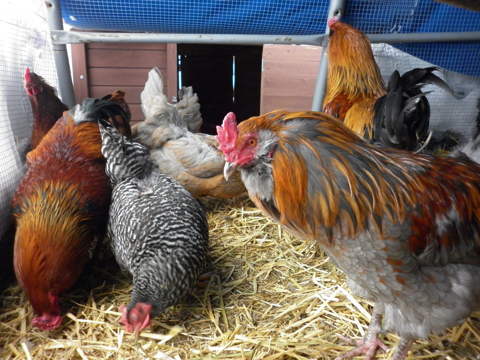 So of course the dogs go after him, I'm yelling my darn head off running after them...well eventually my great pyr/chow mix who had Ringo in his mouth dropped him. I picked Ringo up, brought him inside and the darn rooster is fine. Not a scratch on the guy, just a few missing feathers....I don't know how he survived that. I put him back in the coop about 10 minutes later and he was standing in there crowing away like nothing happened. I'm sure he was telling all the hens about what a brave and tough guy he is...geeze louise I'm telling you, what a homecoming...