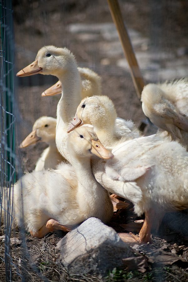 My ducks are about a month old now, and are essentially feathered out. They could go outside, but some of the run is pretty revolting and mucky right now, so I'm holding off until we clean it out this weekend. My ducks and chickens live together with no problems. The ladies nest together, the ducks actually sleep up on the roosts sometimes (we have wide roosts), they feed together - there's no drama. Now that I'm up to thirteen ducks they'll be getting their own home and enclosure so that they can trash their water all they want.
