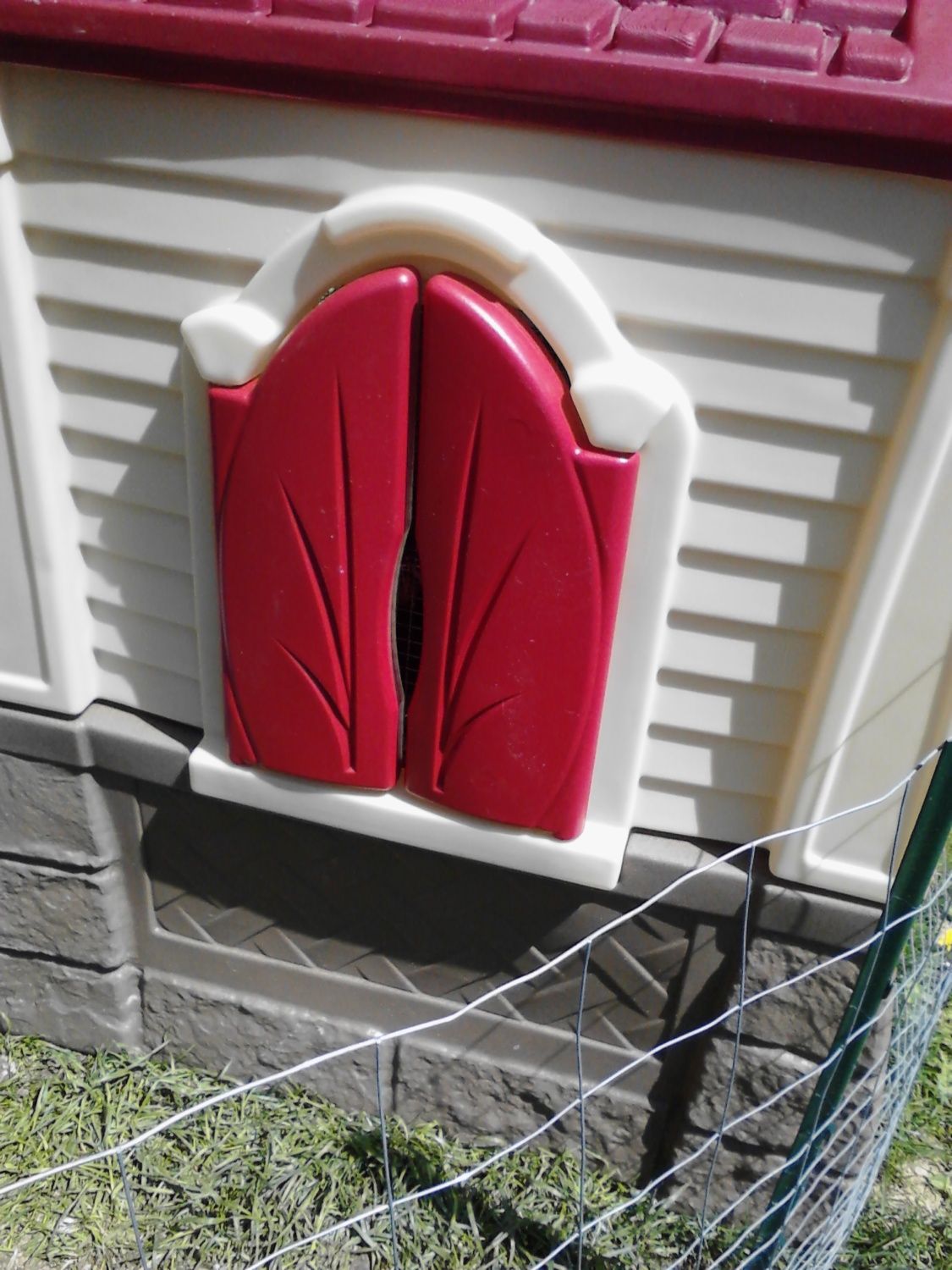 Currently the house is inside their playpen, we will take the playpen down when they learn about going INSIDE at night, and they will free-range during the day with the chickens. The way I put the hardware cloth in, the shutters can be shut for some wind/weather protection...