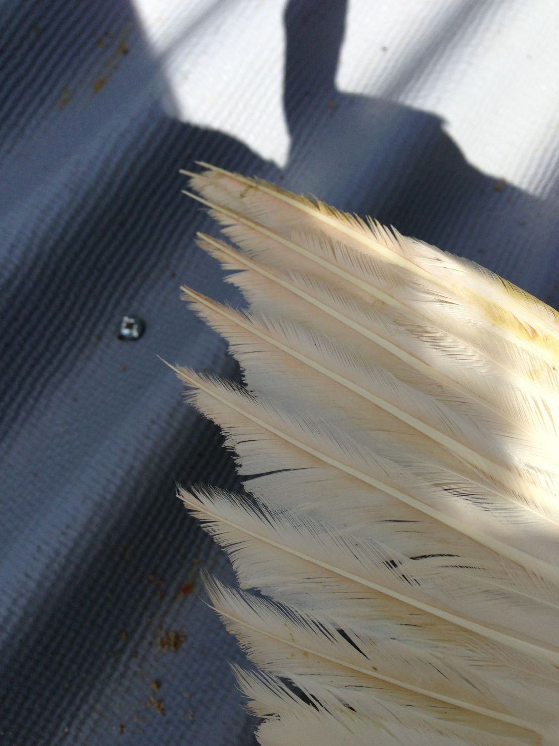 I'm back....upset and happy at the same time. Love the ducks, they're beautiful. However I think they are both drakes. Wth!?! Guess I'm just not destined to have ducks! I read that magpie ducks and drakes are identical as far as appearance goes. I separated them when I got home to see if one would quack and call out to the other and neither of them did. This guy was kinda out there. He told me the blue was the female and the male was the black. He then says "you know, let me just double check that they are in fact male and female." So he takes one over to the fence and I'm thinking Oh, maybe this guy knows how to vent sex them or something? Nope, he takes this metal stick with a string tied to it, hangs it over the back of the duck, waits for it to move a certain way and says "yup, this is a female!" I'm standing there like you have GOT to be kidding me! So he's sexing these things by an old wives tale!?! I was like ok fine, great, thanks a lot and left. I do want one of them so worse case is I rehome one. Another thing I'm kinda upset about is (and I didn't see this on them until I got home) is it looks like they're wing feathers were trimmed. They look awful and I'm wondering how to fix this?? Is there a way at all that they can grow back from this??? Pics below...