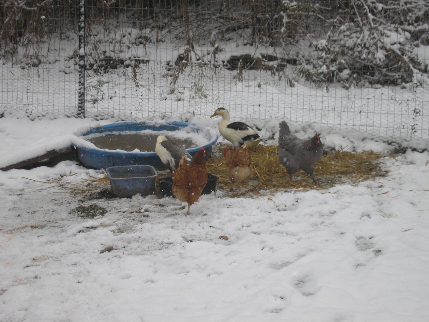 Finially there was three brave souls to join them! Of course not till I put out some straw.