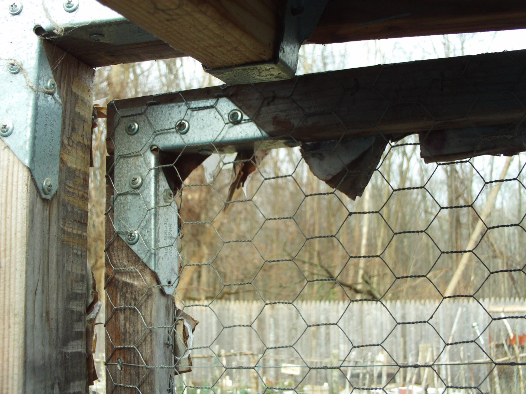 Corner brackets used to hold it together. The door doesn't close a good as when first built but since I lock the girls in I don't worry about it. Perhaps next year I'll change it.