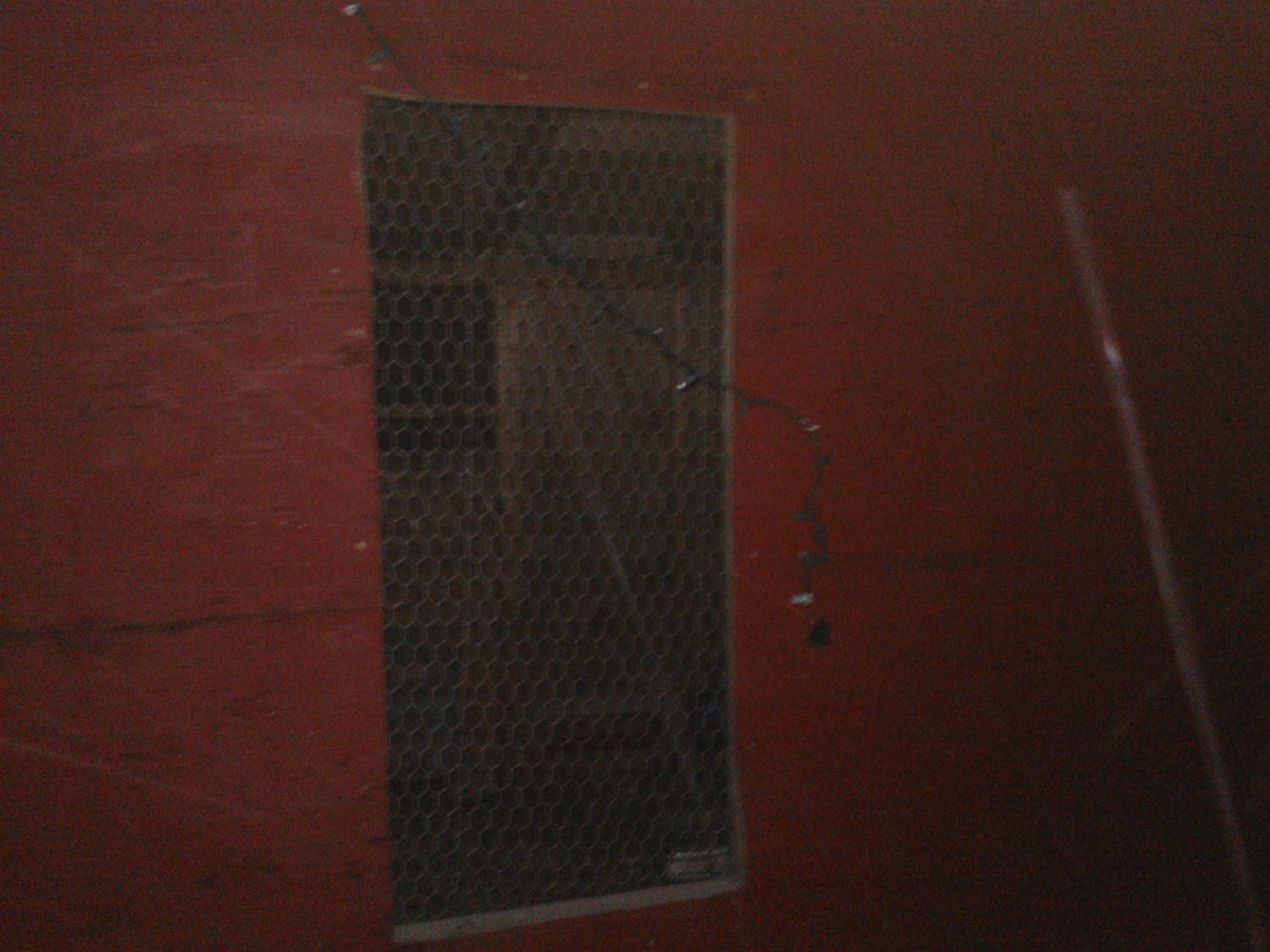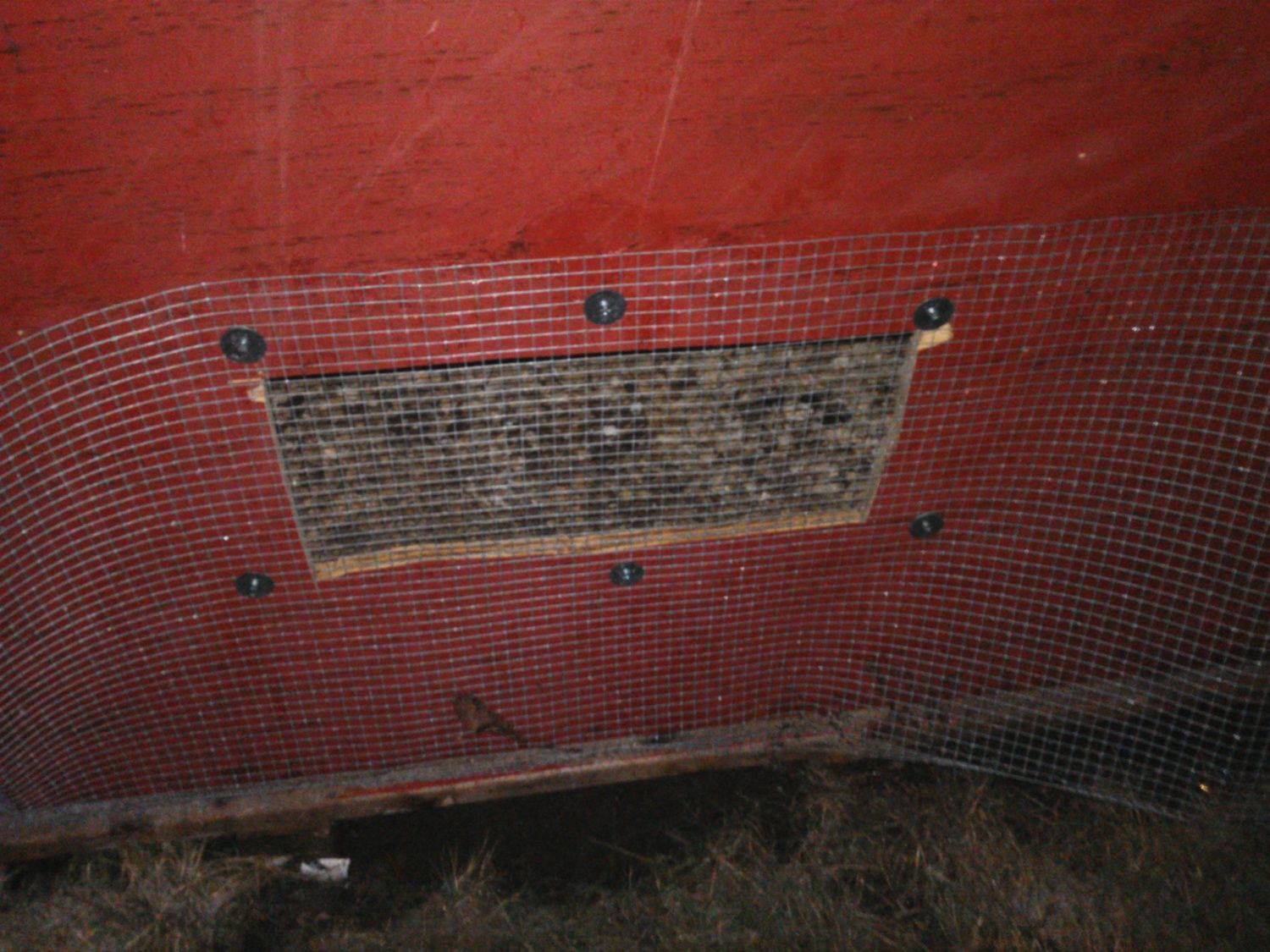 This is the hole I made today I will be cutting hardware cloth down and putting a cover like I have on the windows over it but probably more like a 45 angle.