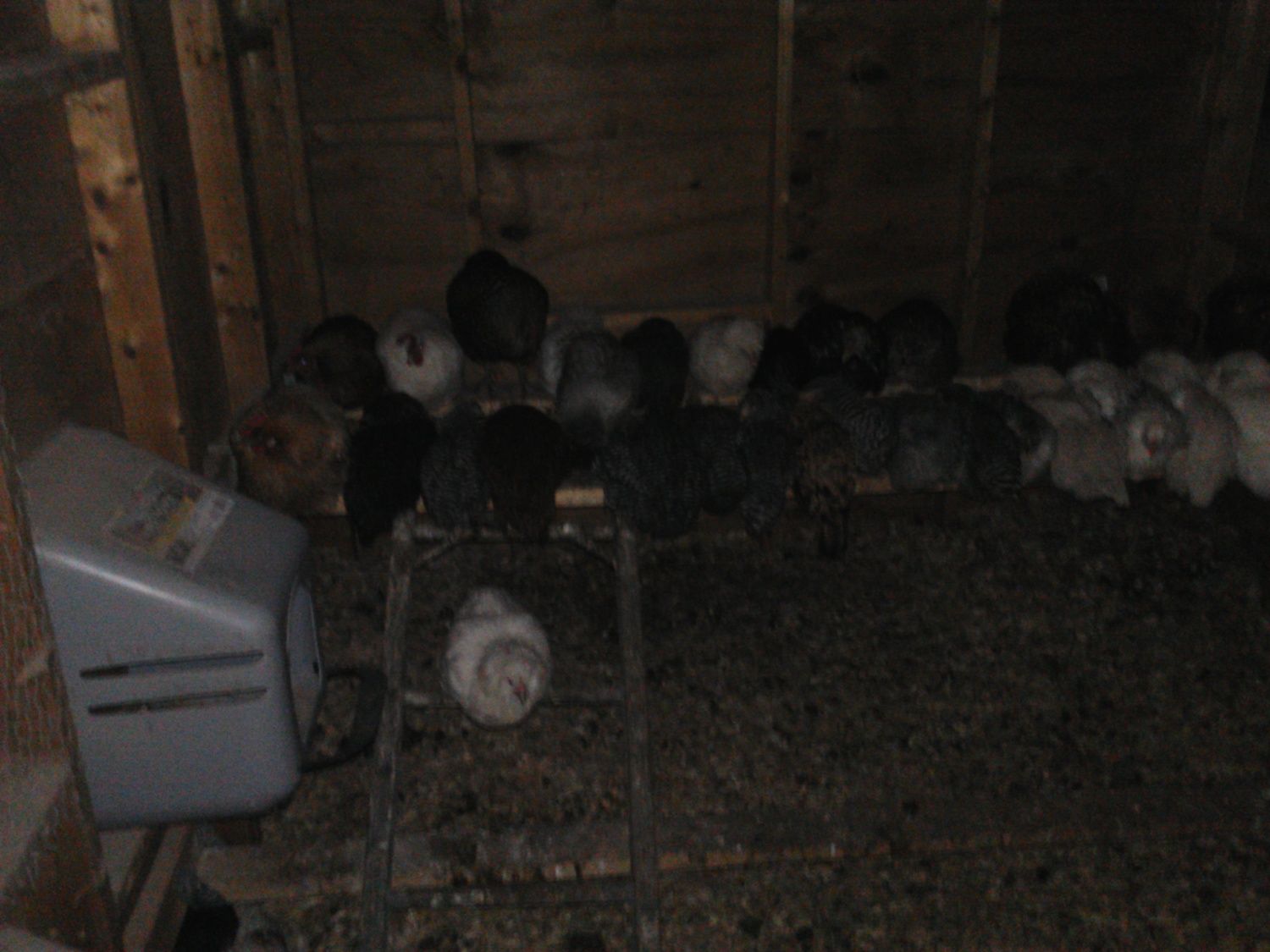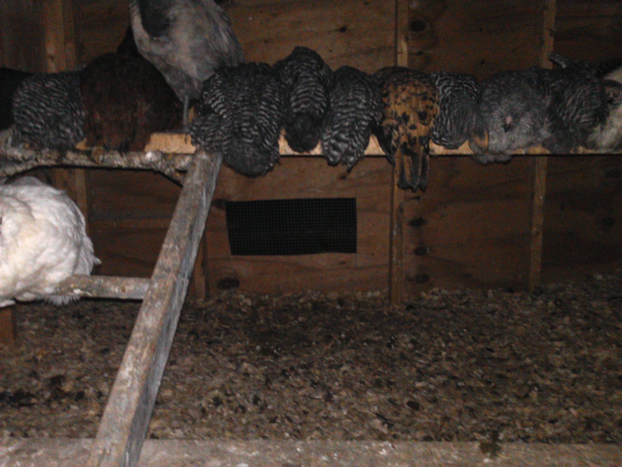 The main problem I have with my roosts besides none using the bottom roost is that they all crowd the front one so if I do move it I will put a ladder to the back on also. They aint high so they can jump/fly from floor to them. But the roosts are like 18-24 inch apart (don't remember how far i spaced them) so some don't try to do it. Every now and then I have a few little ones who don't want to try and barge through the big girls on front roost to get to back on and they sleep on floor only like 2-3 of those randomly doing it.
