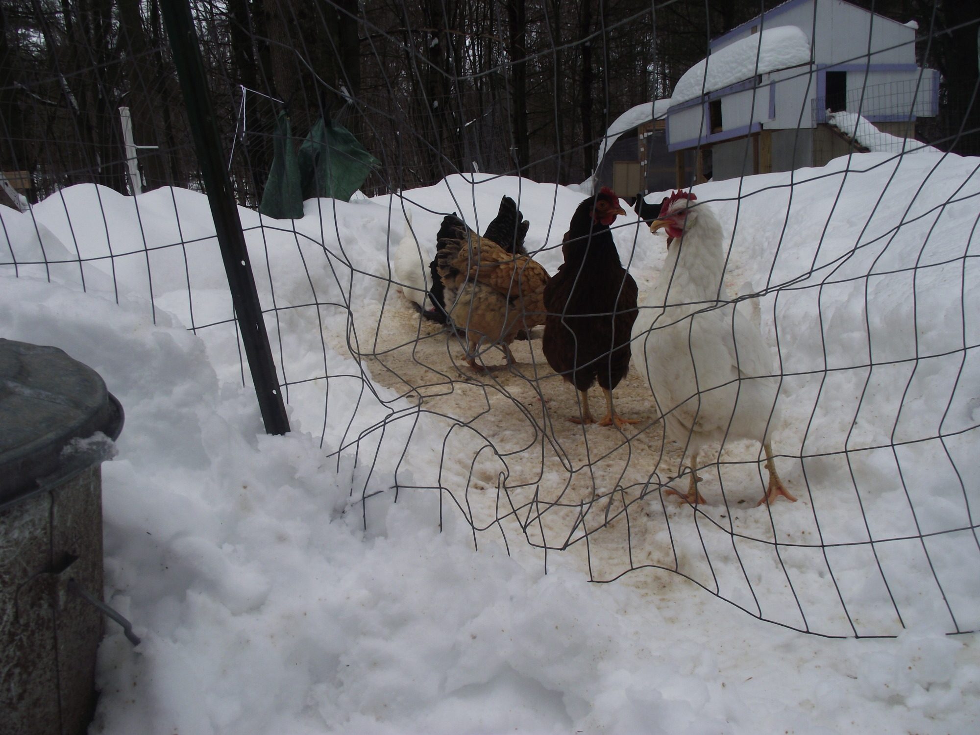 How high does that fence go? Were there any prints in the snow (I can't tell in the pic)? I have had deer mangle my garden fences from time to time by standing on them to eat vines off of them. I don't think a fox or coyote (although they might if the fence was loose enough to get going on it) could do that and a racoon or possum would have climbed over. I think a fox or coyote would try to dig under as well. It is too early for the bears and they would have just plowed it down anyway. It almost looks like someone stepped on it to try to get over it. Any wild hogs by you? You have me stumped on this one.