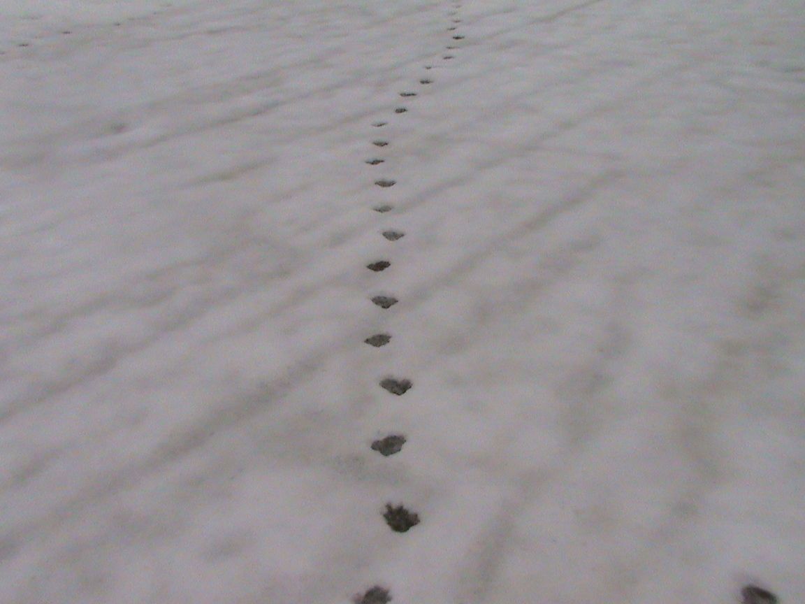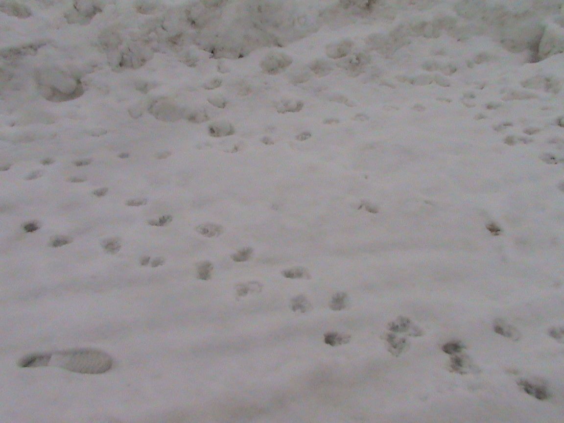 And we had a visitor last night. At first I thought that it was my cat from last night, but after getting a closer look , I know that it isn't my cat! Trail looks like it came in from the road and went all over the plowed part of the yard then it made its way over to the chicken run and went over the fence! I saw prints all over the place. It looks like it looked around the duck hut with no way in it moved on to the chicken coop. It walked under and it looks like it spent some time trying to get in the pop door, but then moved on. I lost track of what direction the tracks left in.