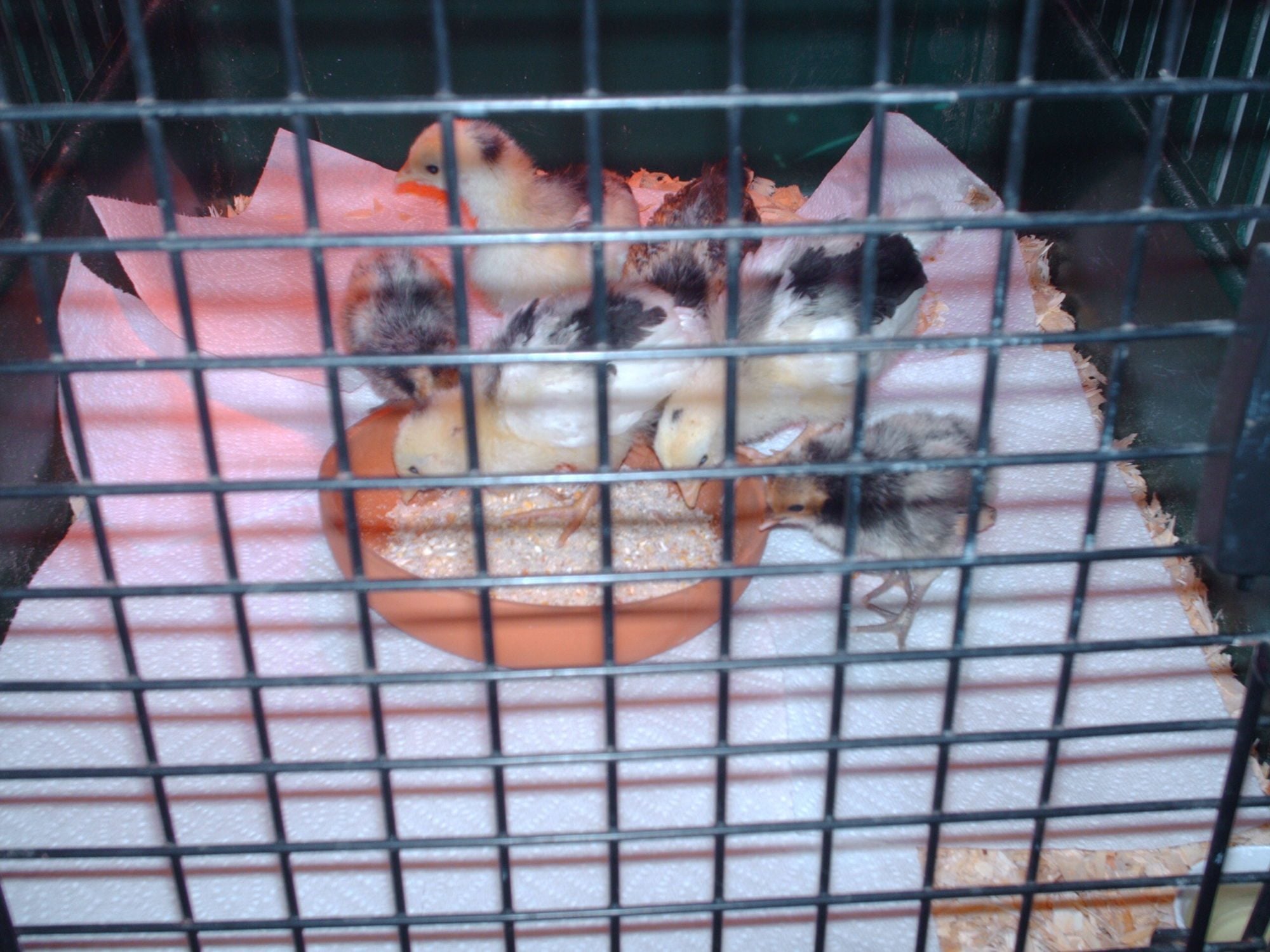 Question for someone... when should I worm them for the first time? I have DE in the shavings and the food is that enough? Got a water bottle to teach them to drink from and brought a piece of wood in to cut them a roost.. the bigger guys already want to roost on something. For now I just have a little short cup in the corner tape to the wall for their vitamin water.