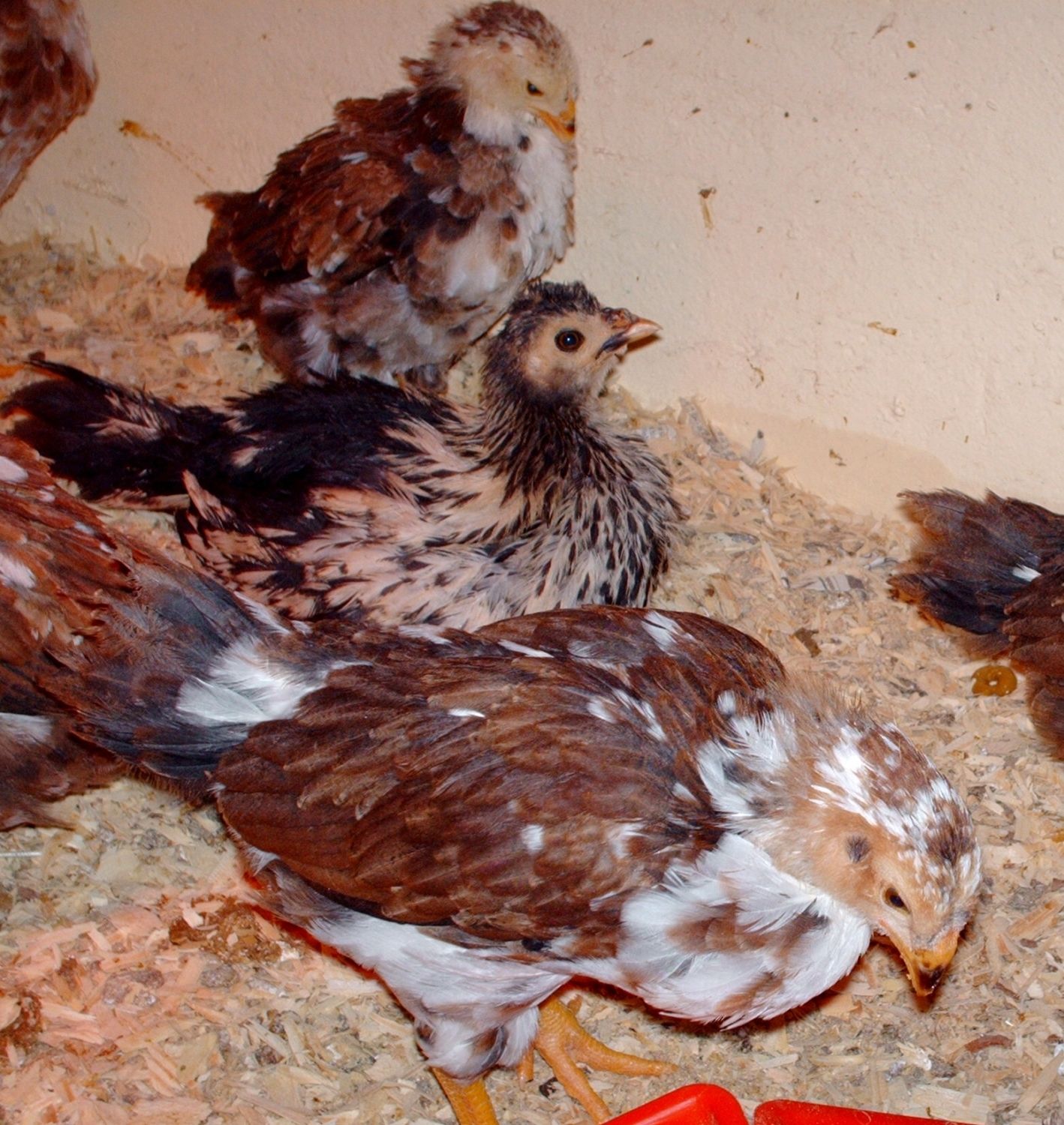 My tiny little single hatch Orloff is doing really well now but still is not any bigger than the RIR or the tiny black Silkies. Midget.