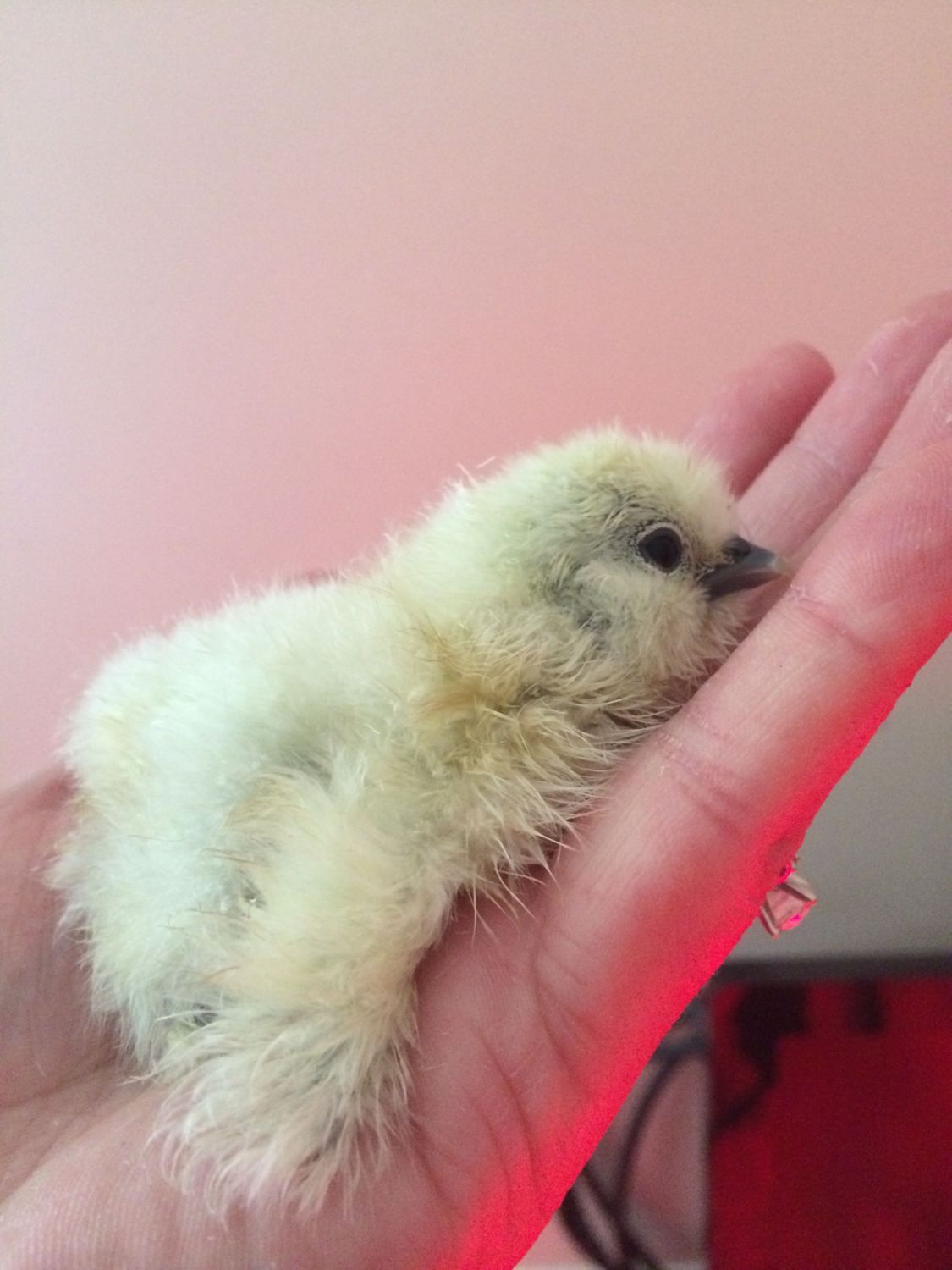 Morning All, woke up to my last little Silkie egg hatched. An all white one...weird considering the parents are lavender...anyway. Just got done saving it because it got kicked out from under mama and was just laying there cold barely breathing! Still wasn't even completely dry yet from hatching. So I raced it inside took the blow dryer to it and it's doing much better now. All dried out and fluffy and chirping! I have it under a heat lamp for now until it gets moving around on its own enough to fight for a spot under mama when I put it back with the others. Here's the last of the hatch...