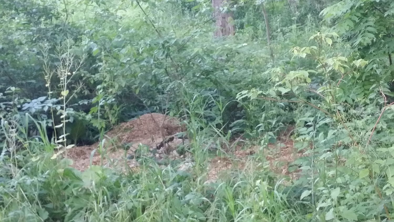 The previous owner dumped in some very nasty junk fill. Huge slabs of cement and wire fencing. It would be one thing if they'd graded and buried it but they just left a huge mess.