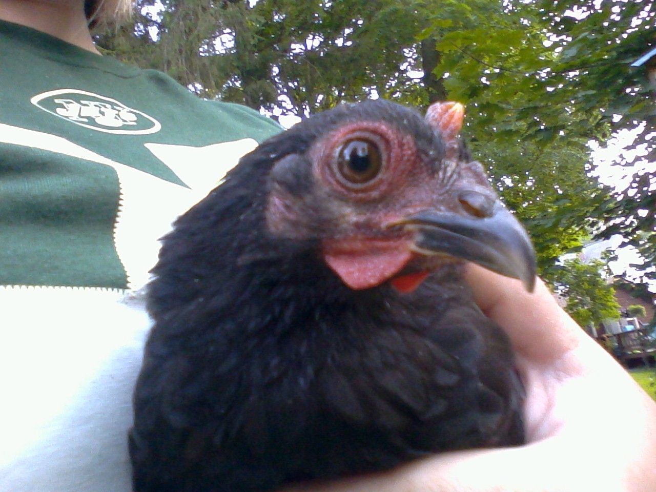 Got some cool pics today.. First up is a naked neck that I assumed was a boy due to the cool colors - but it's 10ish weeks old now and looks very girly - no red in the comb at all. so yay!