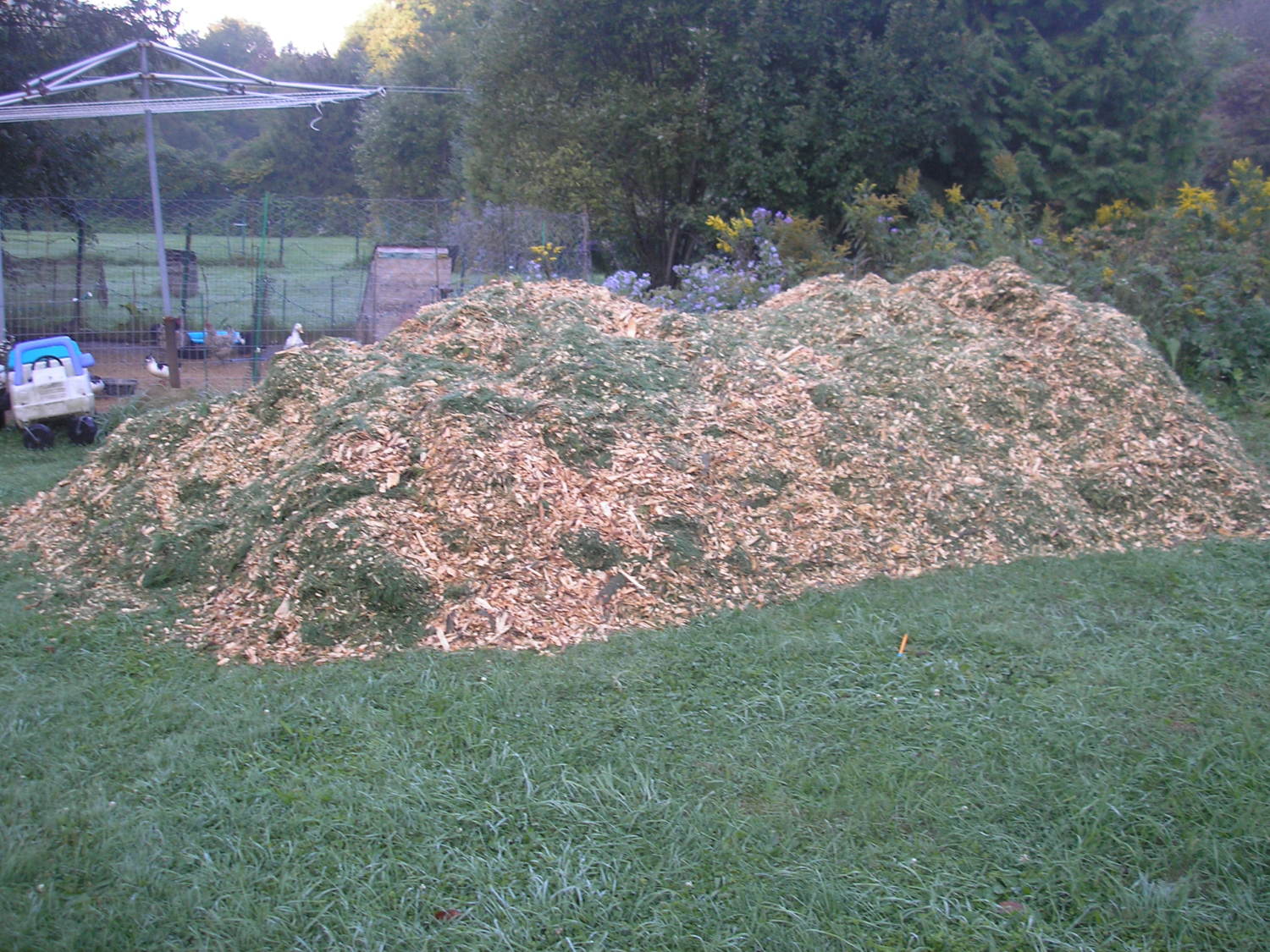 i thought about having a buddy who cuts trees for a living bring me a load for the samething ..let me know how this works out for ya..Got a visit from a chicken fairy last night...