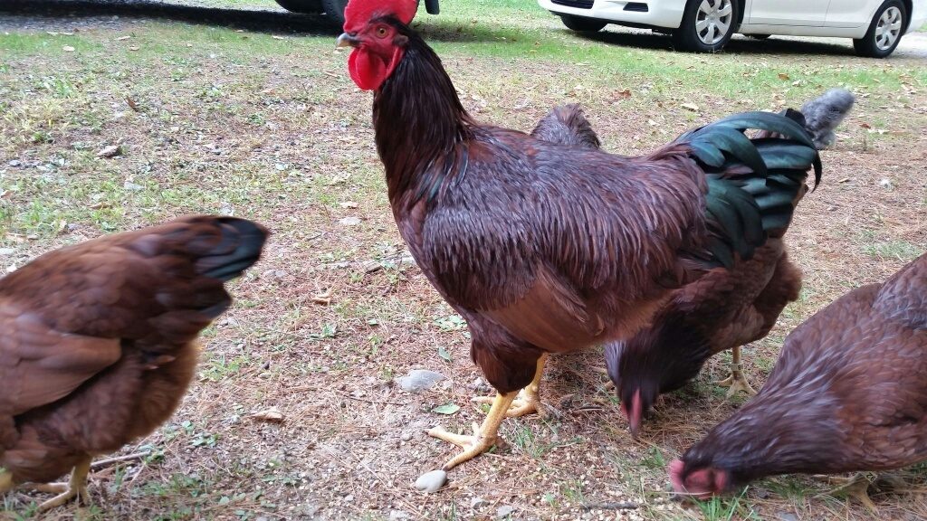 Meet The Duke. He is the winner of the culling process in my quest for a decent Heritage RIR rooster. He is 5 months old and is pretty good type for the breed. In the top pick you can see his brother, Rooster Cogburn, with his head down eating in the front. Not as good but backup just in case. I am a huge John Wayne fan, hence the names. The Duke has a wonderful, laidback personality. I will put him with my 3 best heritage pullets for spring chicks.