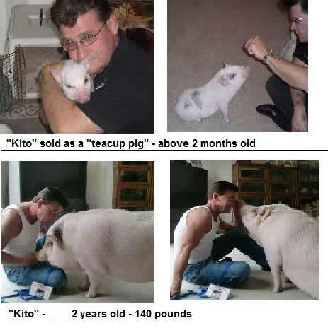 I have done some reading on those tea cup pigs. They dont stay small and they do eat and get big. Small may be cute but breeding an animal to be very small is going to lead to issues. Organs dont always follow body size so you have issues with small bodies and normal size organs. Same goes for breeding for large sizes. Science has proven that extremes on both ends of the spectrum leads to many health issues and life expectancy drops. I wonder how long Paris Hiltons 38000 dog is going to live?