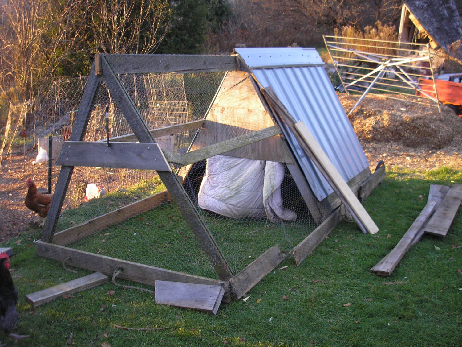 They used it for a tractor for some meat birds so there isn't any floor in the house part. DH is working on a plan for putting a floor in it so it is a little safer for my ducks and gets them off of the ground. The open part also needs some work. They just have a blanket that they hung up. I may want to close it up a little more. Not sure if I should put a door on it there to lock them in at night. We are planning on making it bigger and going to put a door in the side of the run so I can open it up for access to the food and water. If that is secure will I need a door to lock them in the house part? You don't have other houses in a hoop coop so I should be fine right? I have to pull off the chicken wire that is on it so we can fix the broken boards. Going to get some hardware cloth to put on it to make it more secure. We also have to make the door in the back bigger so that I can get in to clean it and get the eggs. Going to get something to put on the one side to help block some of the wind and snow for winter, maybe a little over the top...So excited that my ducks will have some more room..and I will have some more room for some more ducks!!!