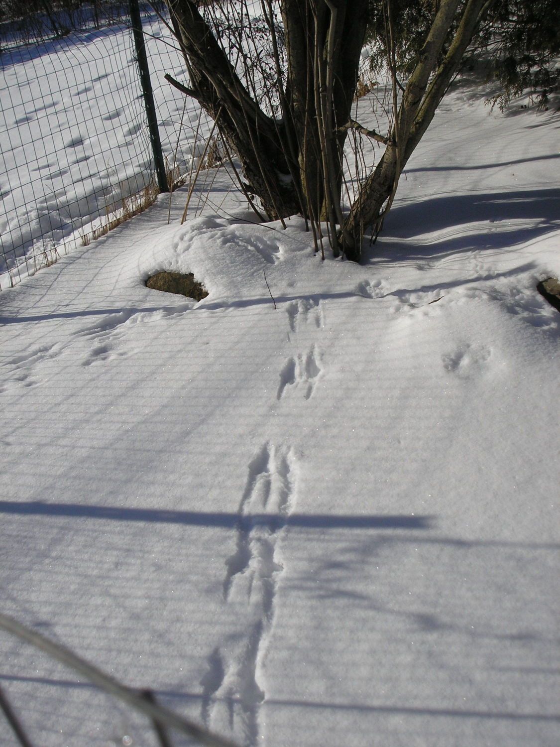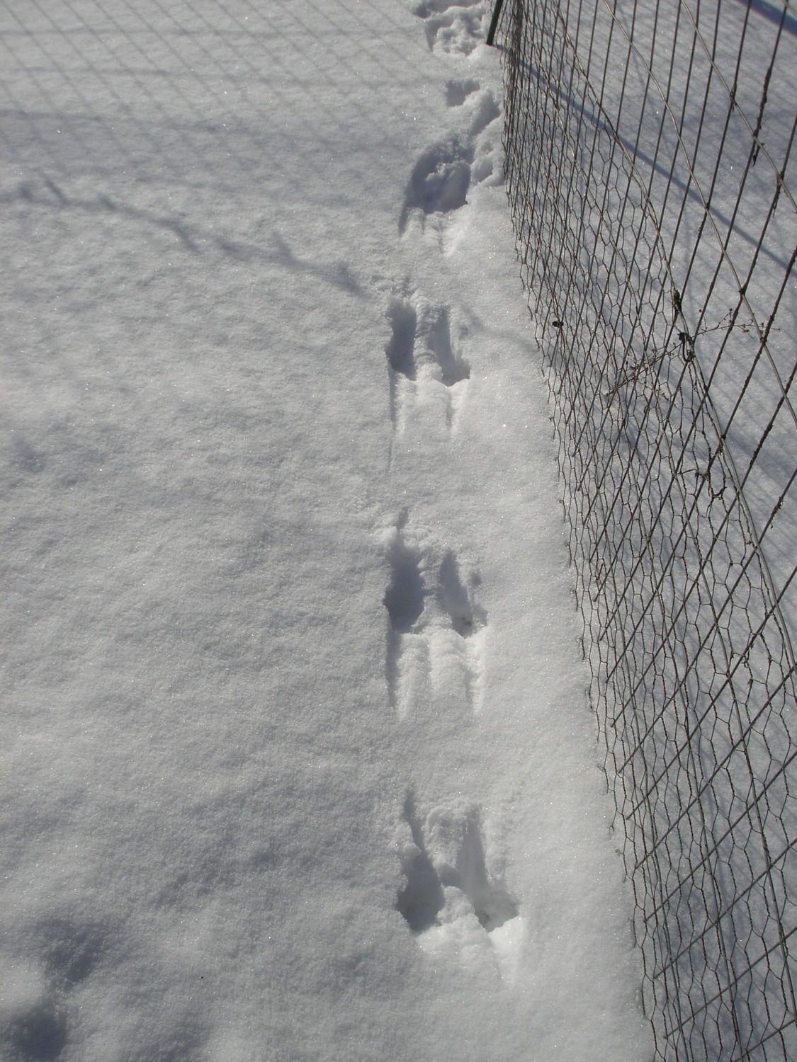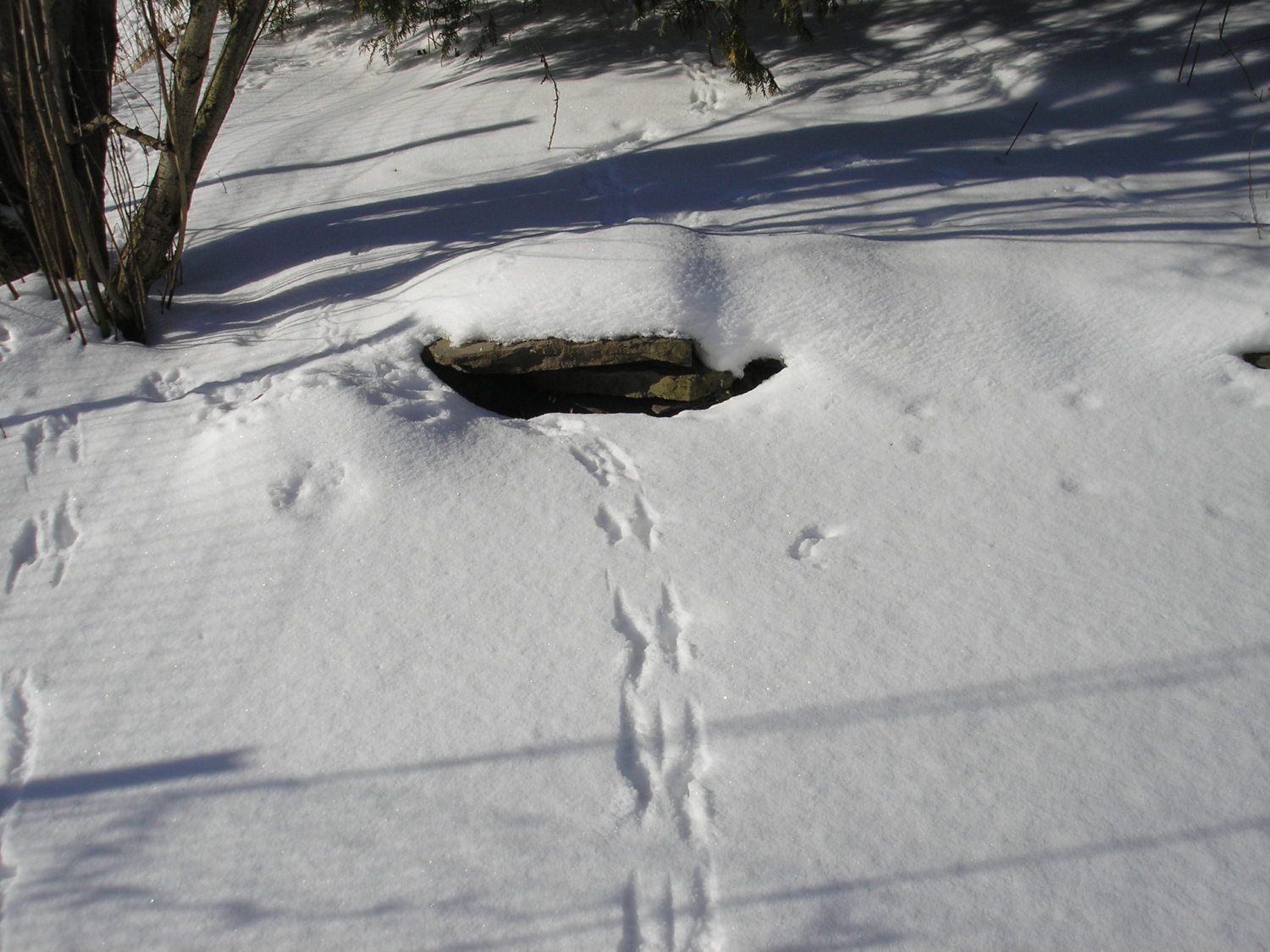 You can see the rock wall where the tracks went into into under the snow and then back out.