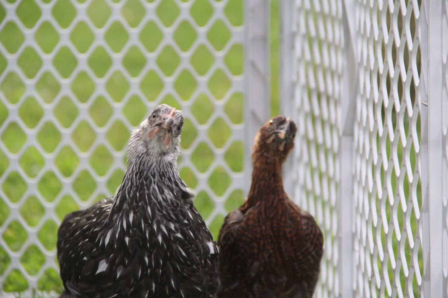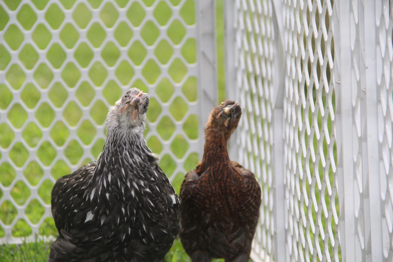 My Silver Laced Wyandotte Chick, Fern (8 weeks) & Partridge Rock chick Honey (7 weeks) seem to be looking more grown up every day.