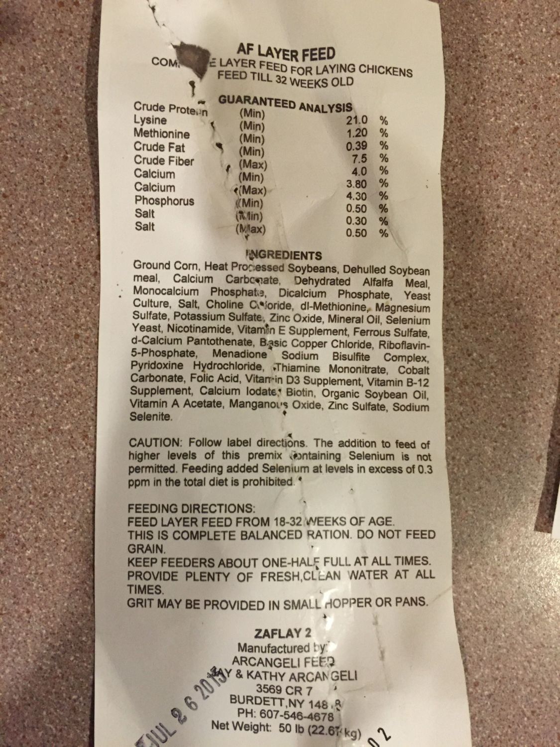 they raise beef cows, meat chickens, and layer chickens. They got tired of driving a long way to get feed & started grinding their own. They figured other people in the area might like a local source of feed too so they opened for business. Sweet people. So happy for the opportunity to support another local farm and it seems like decent quality food for cheap. $11 for 50# of layer mash with 21% protein. Hope my chickens like it too. Here's a pick of the label from the bag:
