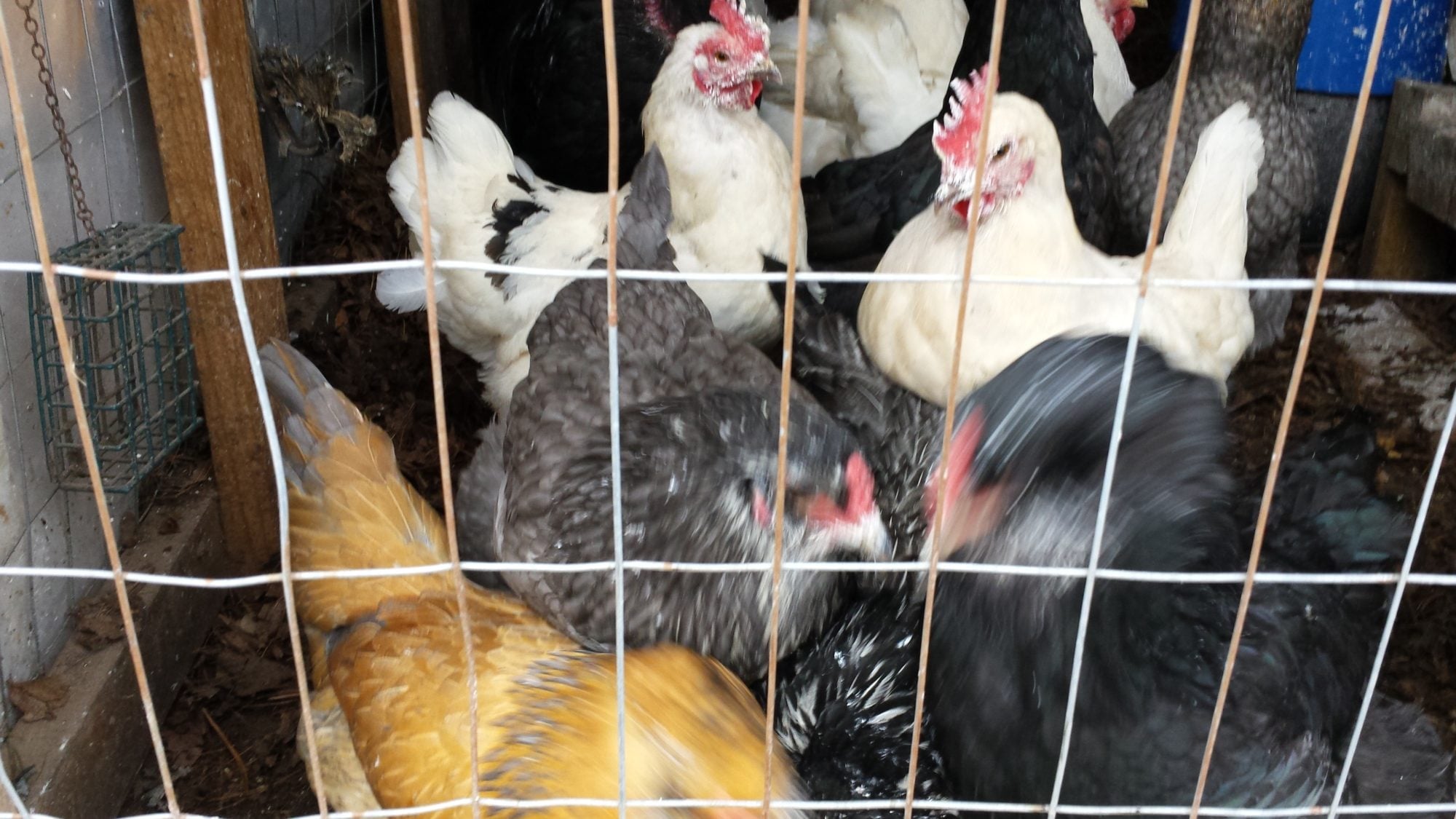 nope no egg sign . Hubby said not until we have farm insurance. He's afraid our insurance company will catch us since they know we have chickens way beyond 4. I wish I had more people to buy them though. That's a lot of money.That is so funny ...me too ..I rarely ate eggs before we got chickens ..now I try to eat at least one a day ... Can you put out a egg sign ? Fresh Eggs ? This is my chickens before the cold wave .. I mixed some sunflowers in there fermented feed ..so they had fun picking through it .. Even the chickens that didnt have beards ...had beards & its on their combs too... They looked like they played war with the food ..LOL222
