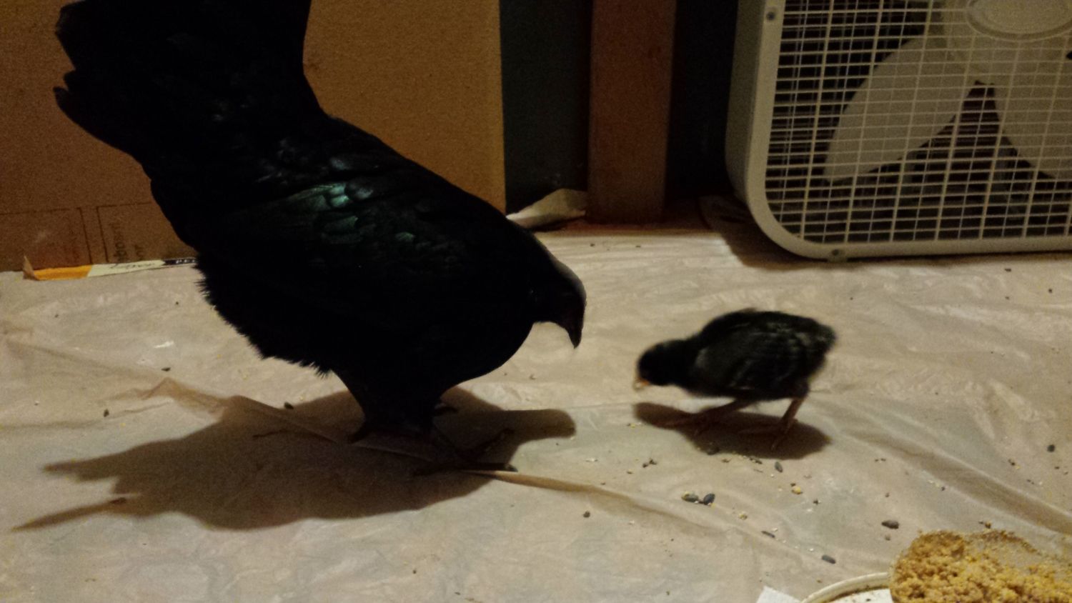 I don't have any little ones ATM, fortunately. So far I've narrowly resisted the urge to set eggs or let broodies brood. Bringing them all in would prob be more stressful for them than this rotten cold snap. Not sure how I'd accommodate 35 birds (incl 8 roos & 2 geese) in my basement, tho I'm sure it would be a sight. Your two look very happy with their situation tho. TiTi is a beautiful hen. Is she a Sumatra?