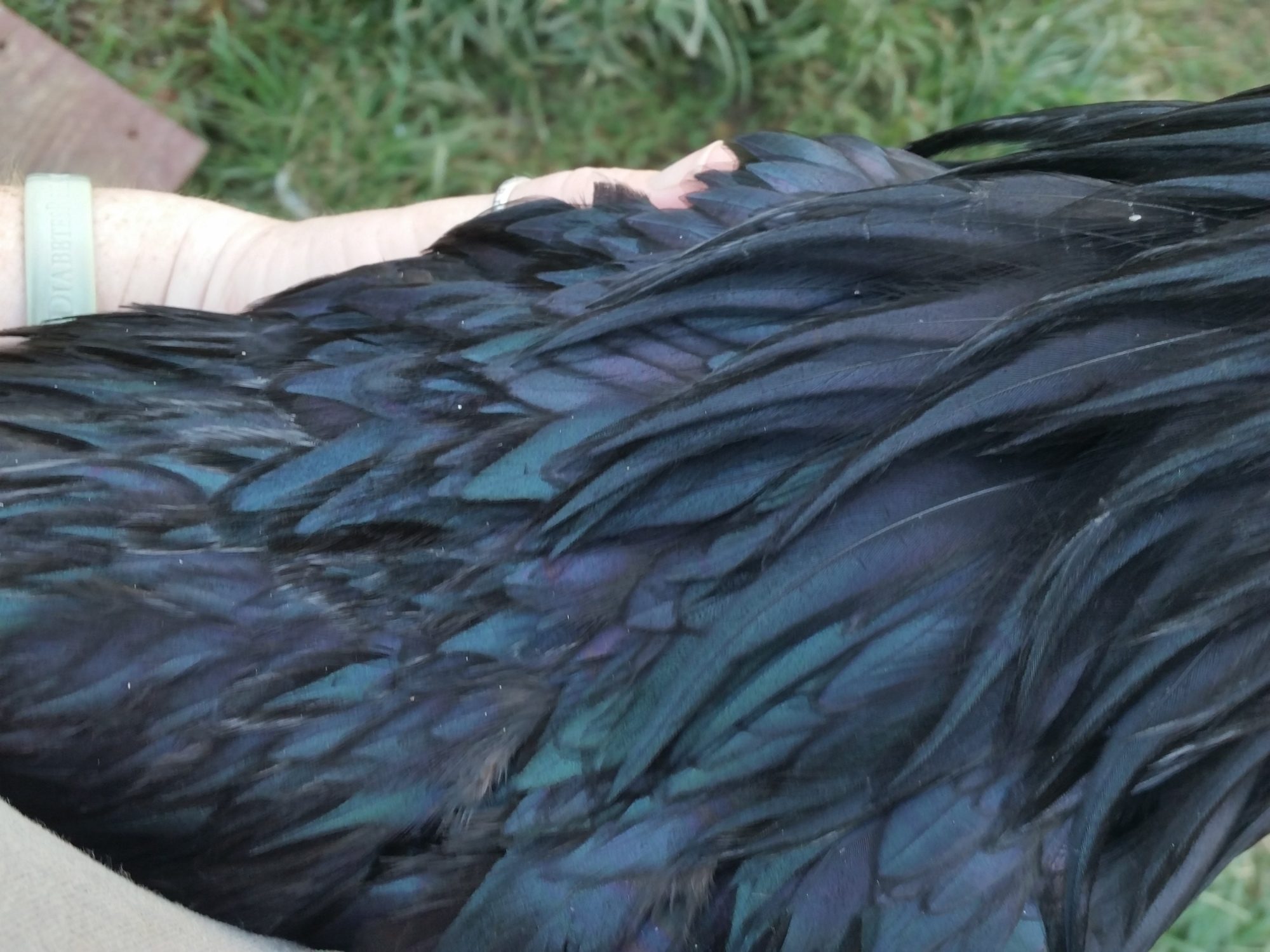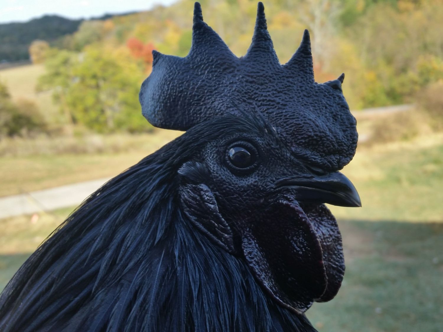 Just wanted to share some pictures of my gorgeous new Ayam Cemani roo. He's a stunner. Gotta come up with a good Halloween type name for him.
