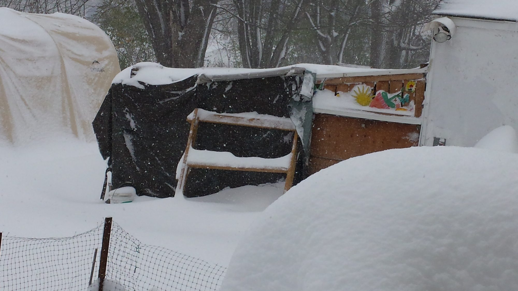 Snow came into the front of the coop 2 foot ....Im glad the coop is long so they could get away from it