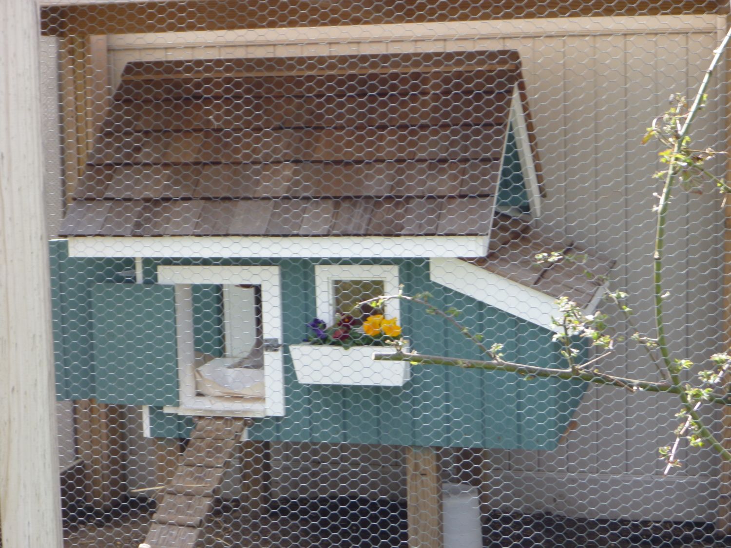 I like the flowers and I've got a crate I'd like to turn into a coop like yours. I like the color too. Did you paint it yourself?