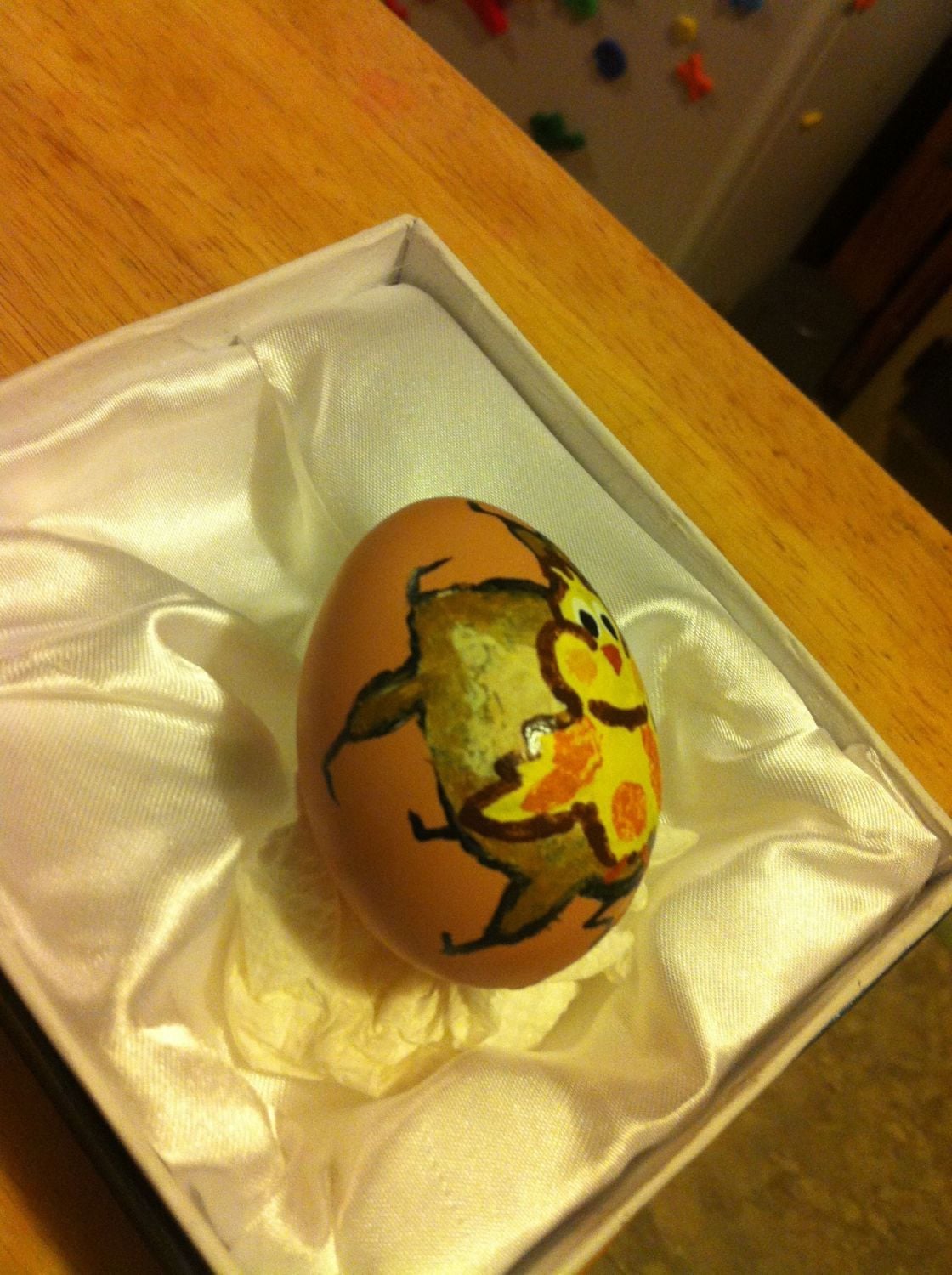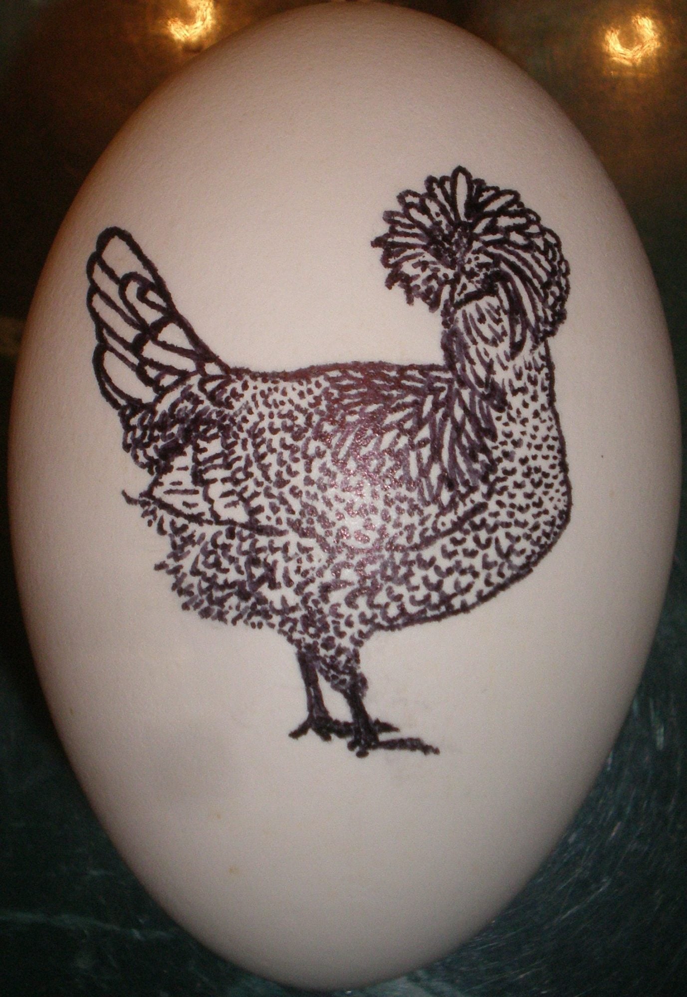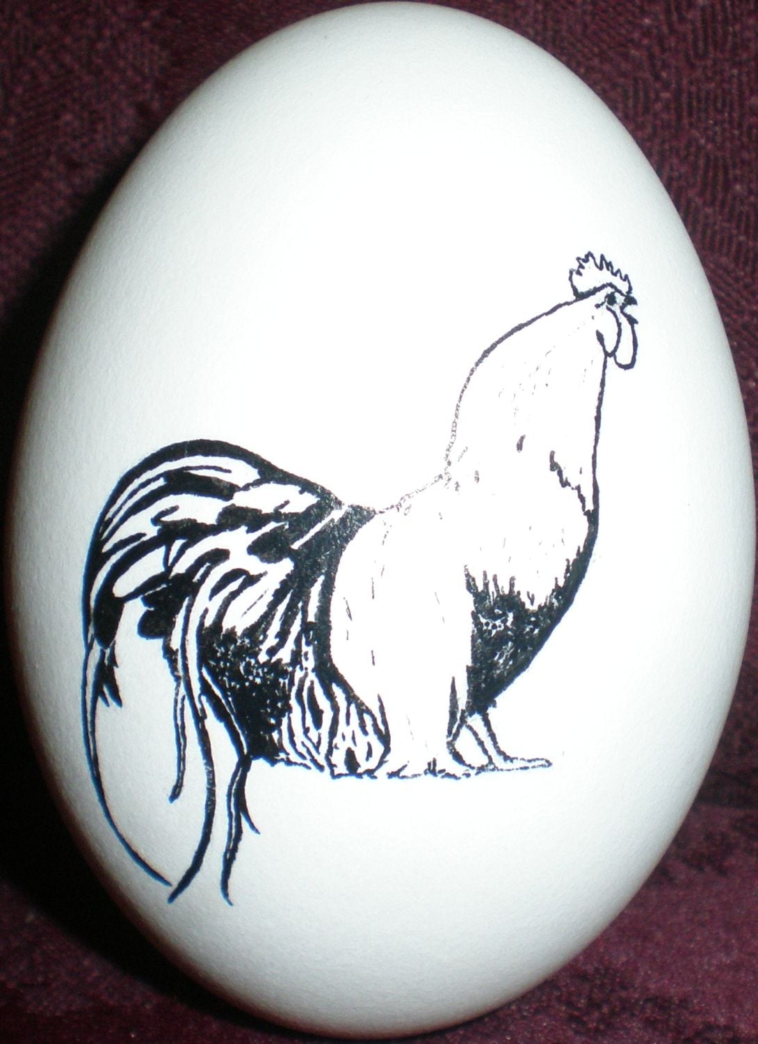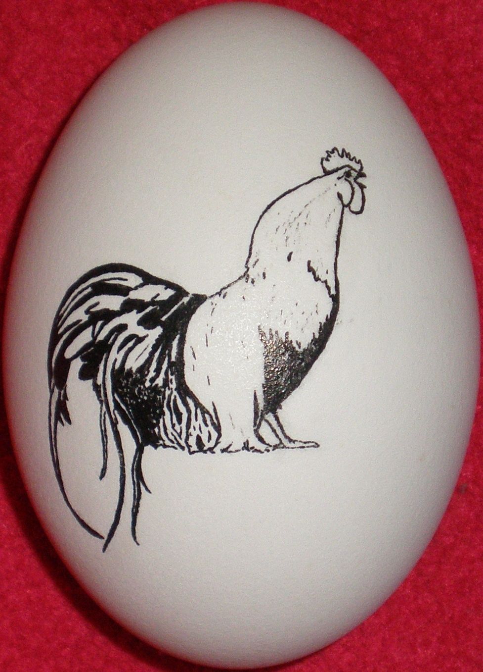 . . . and a Phoenix rooster done with India Ink. The India Ink is bad for cameras with flash, but my favorite egg-drawing ink. See how shiny it is?