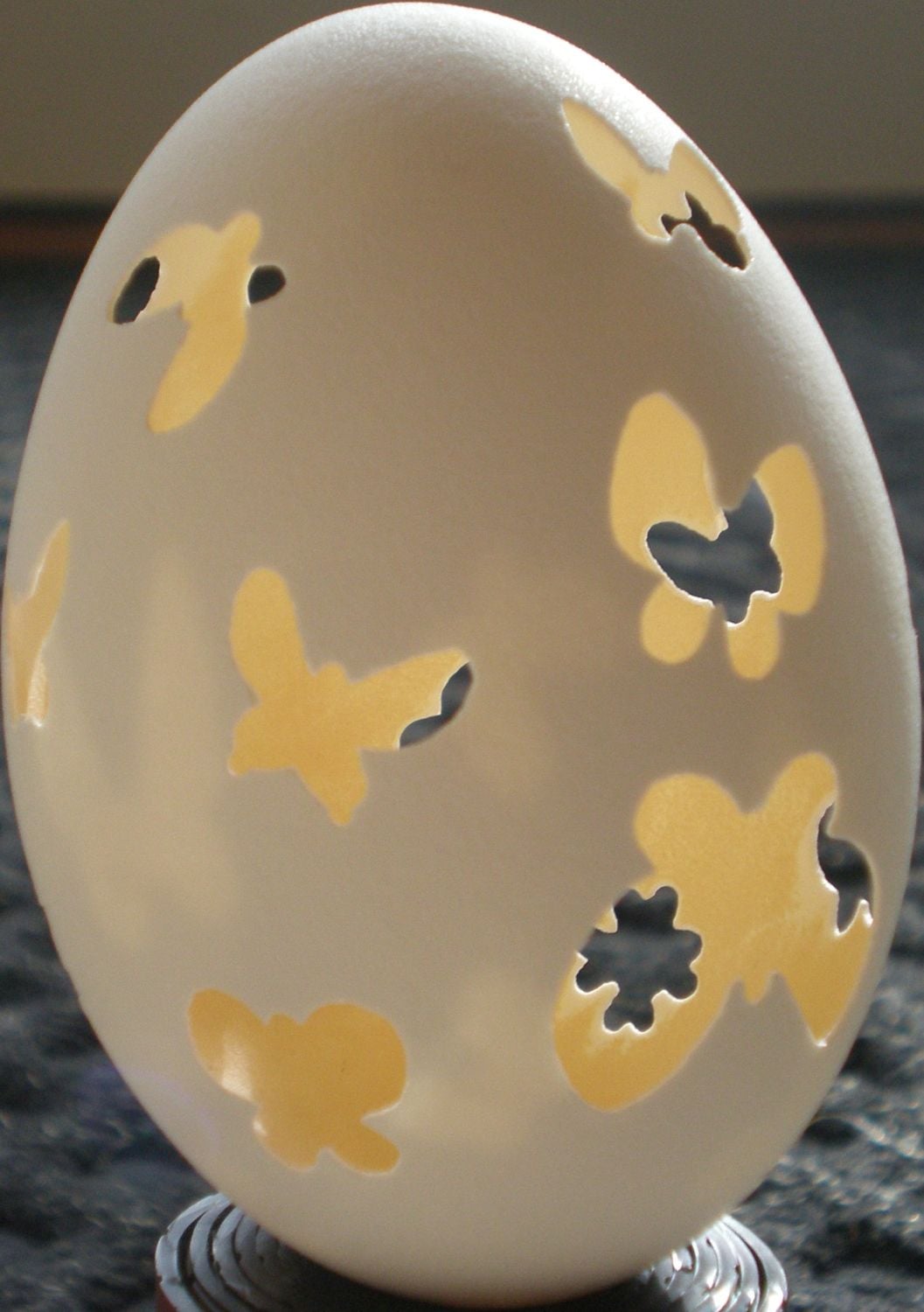 Okay, here's my third entry. The pictures didn't turn out very well, but you can see the light shining through the shell in the second pic. It looks better with a Christmas light in it, let me tell you.
