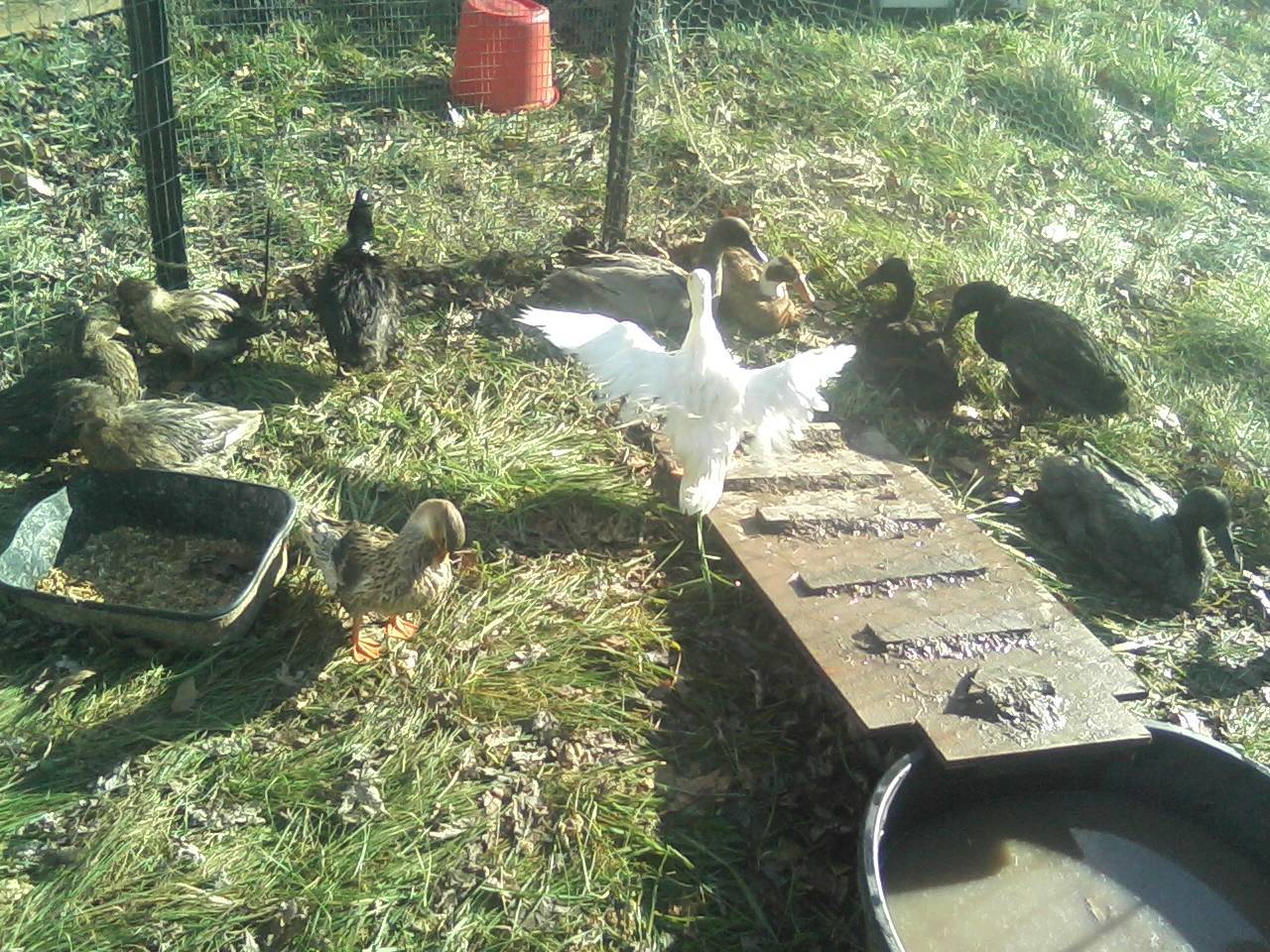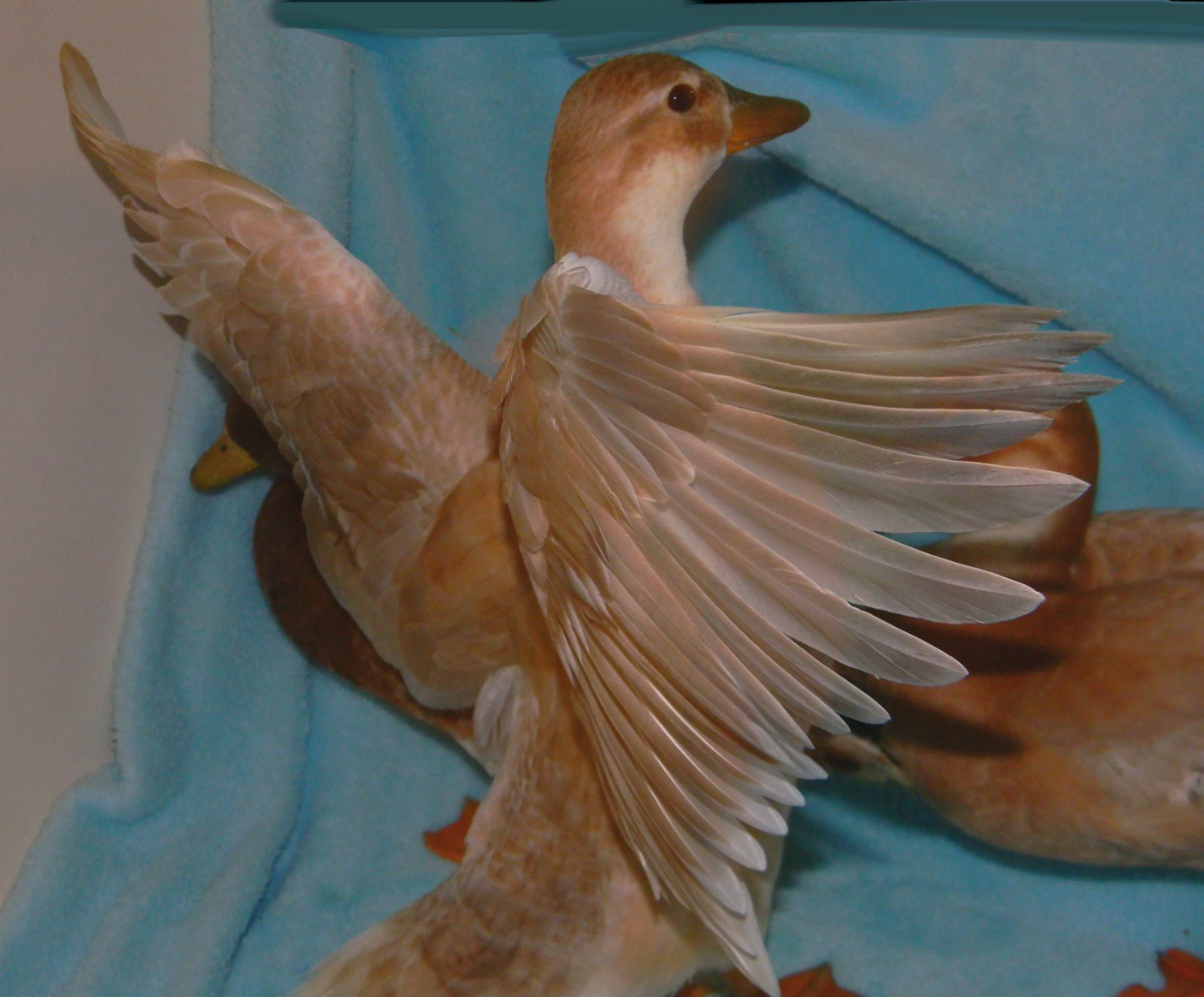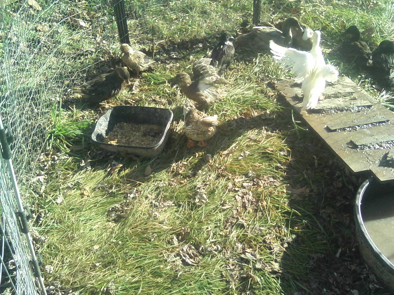 Dec 14, 2012 #14 S SilkieSensation Crowing 7 Years Joined Oct 25, 2012 Messages 6,688 Reaction score 300 Points 258 Location Baltic, Ohio This is my little white Call Drake Snowball showing off his pretty wings after a dip in the pool. And here he is with 1 of his girls joining him in the fun.