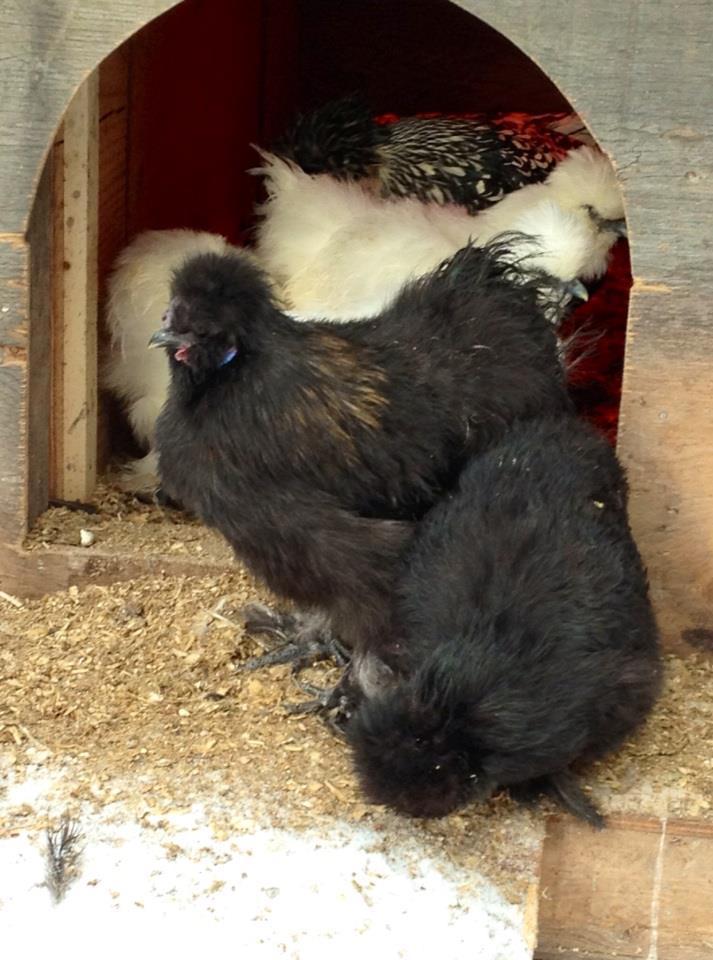 Here is a pic of one of my silkie roosters ... Tattoo. He's not a good roo though - his comb/wattles should be black and so should his plummage, but he's kind of brown with a weird ruffy thing. He is the guy that crows every morning with his little helium voice though.